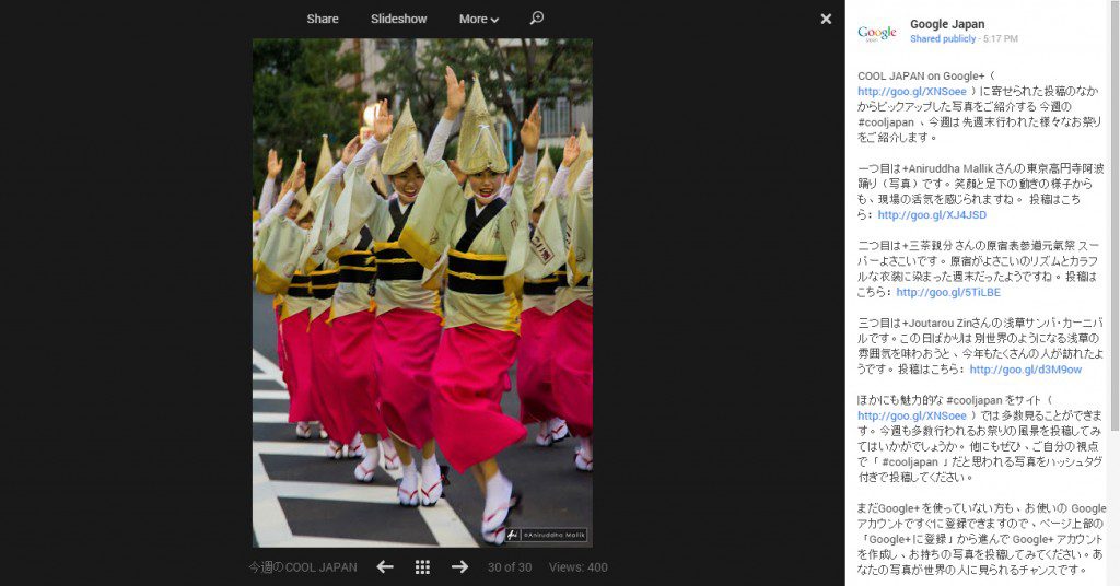 Google Japan started an interesting campaign (powered by the Google+ platform) named “Cool Japan” some time back to promote interesting visual content from Japan, mainly photographs and short videos. Users of Google+ can share their content with the hashtag #cooljapan. The curators of the campaign periodically select contributions that they like and promote the same on the Google […]
