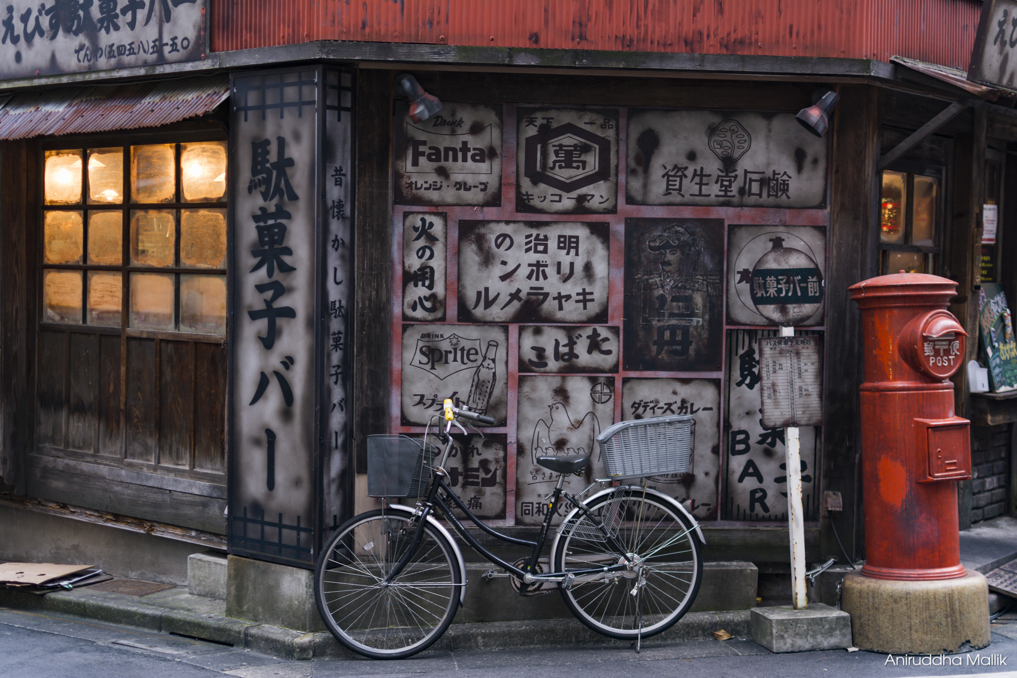 Despite the fact that Japan is one of the most advanced and developed countries in the world, signs of its fascinating past linger on in various parts of the country. In the heart of the glittering metropolis of Tokyo, you will often come across such symbols in the most unexpected places and all you can do is admire and wish there was much more of the same still remaining. Many newer restaurants and bars are constructed in such a way so as to give them a retro look, taking its customers back to the times gone by. Here is one photograph I took of one such bar in the Ebisu area of Tokyo.