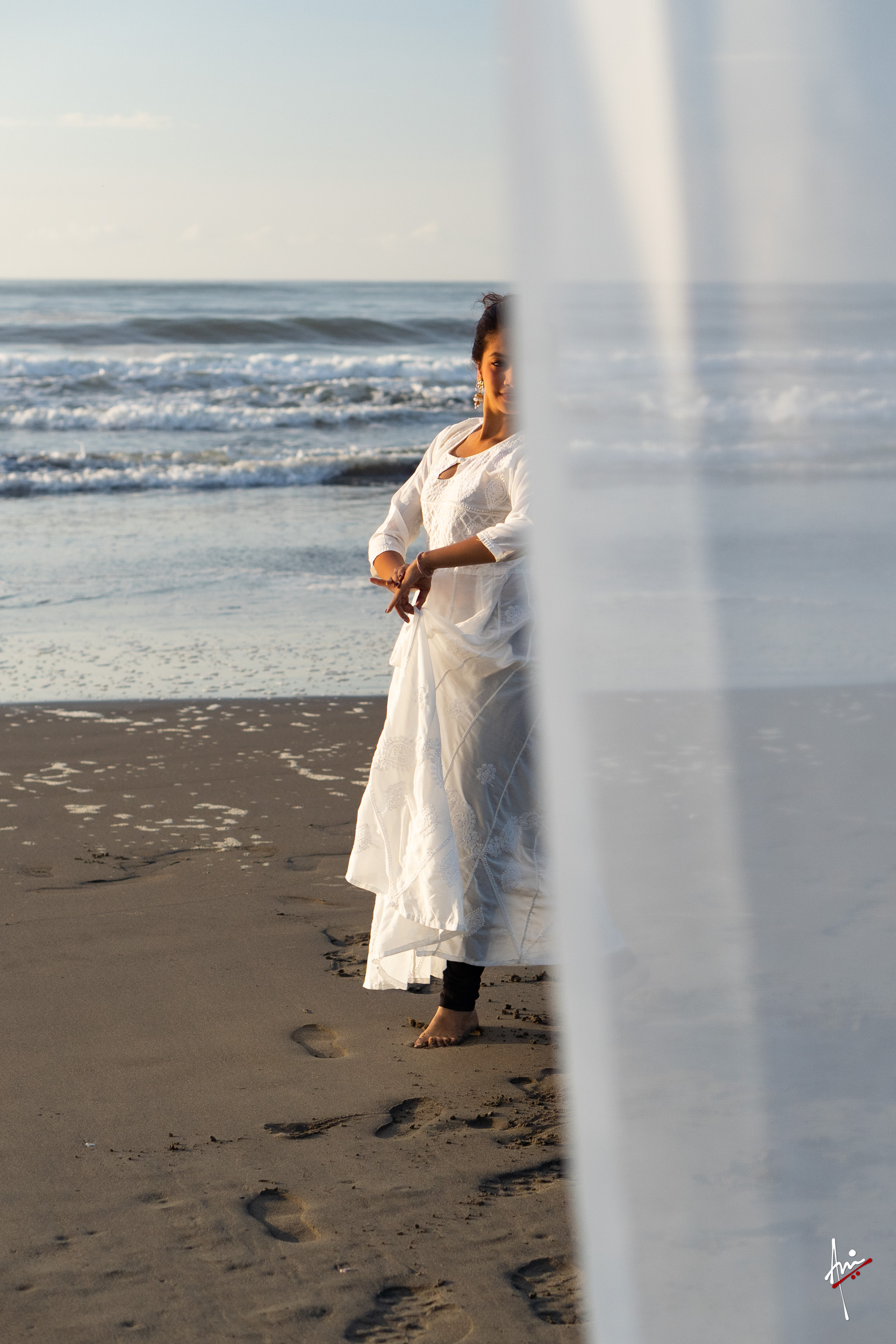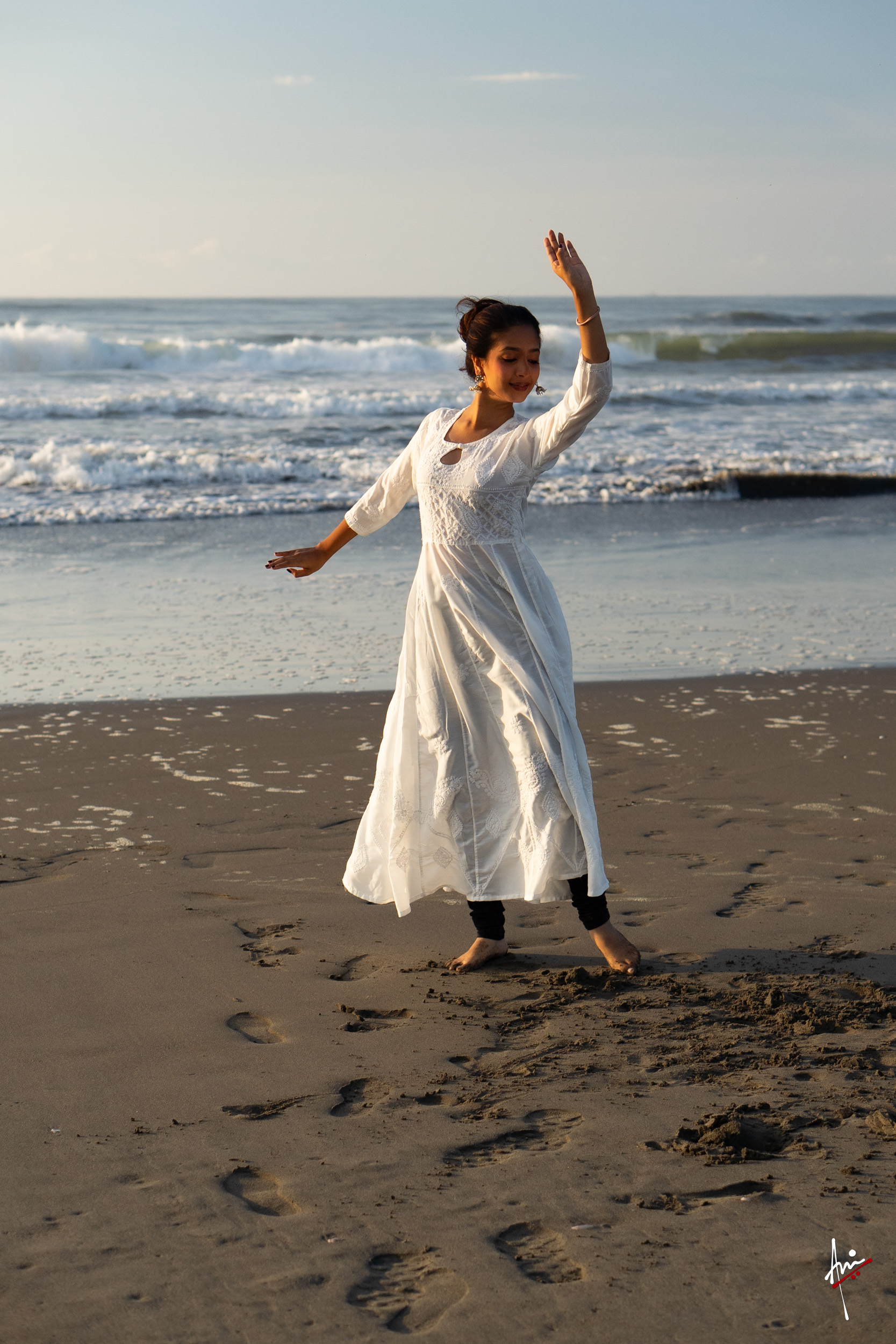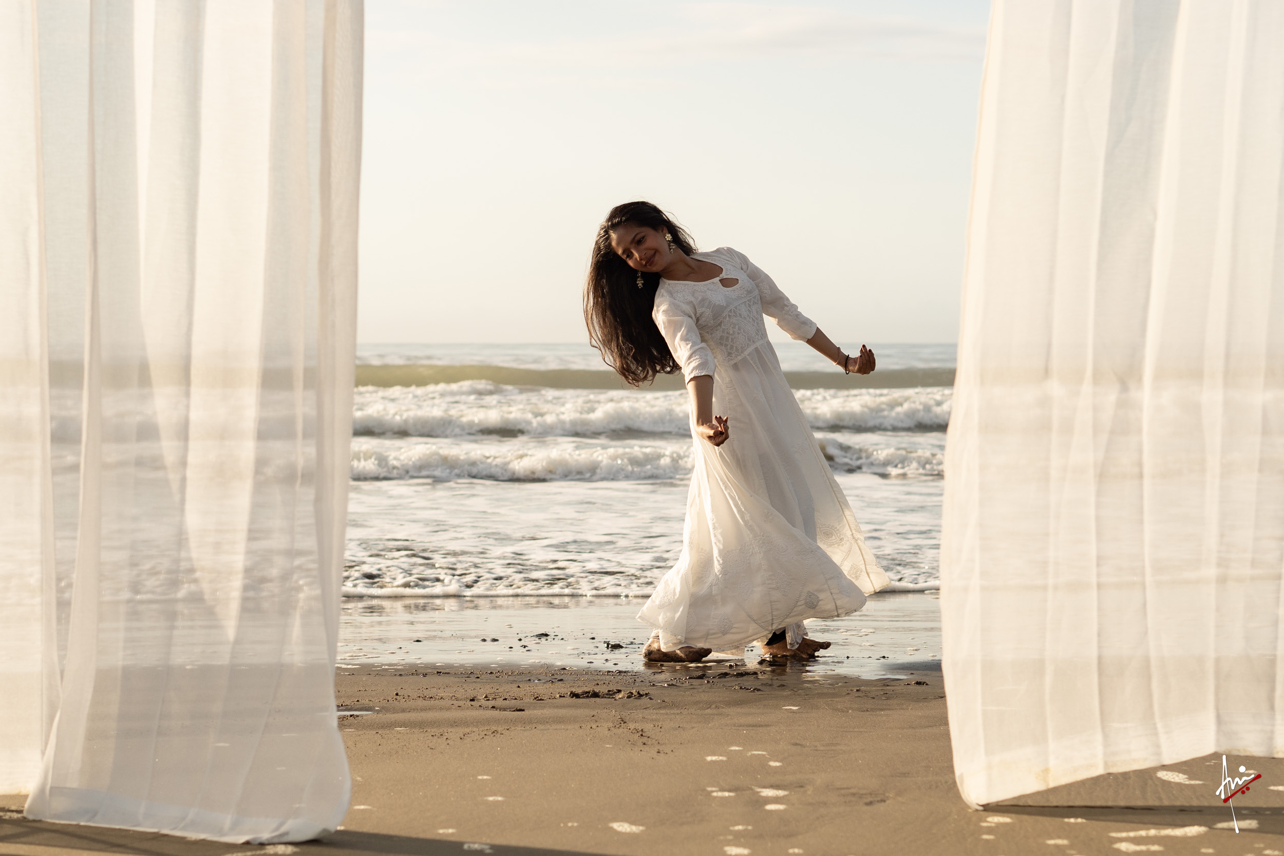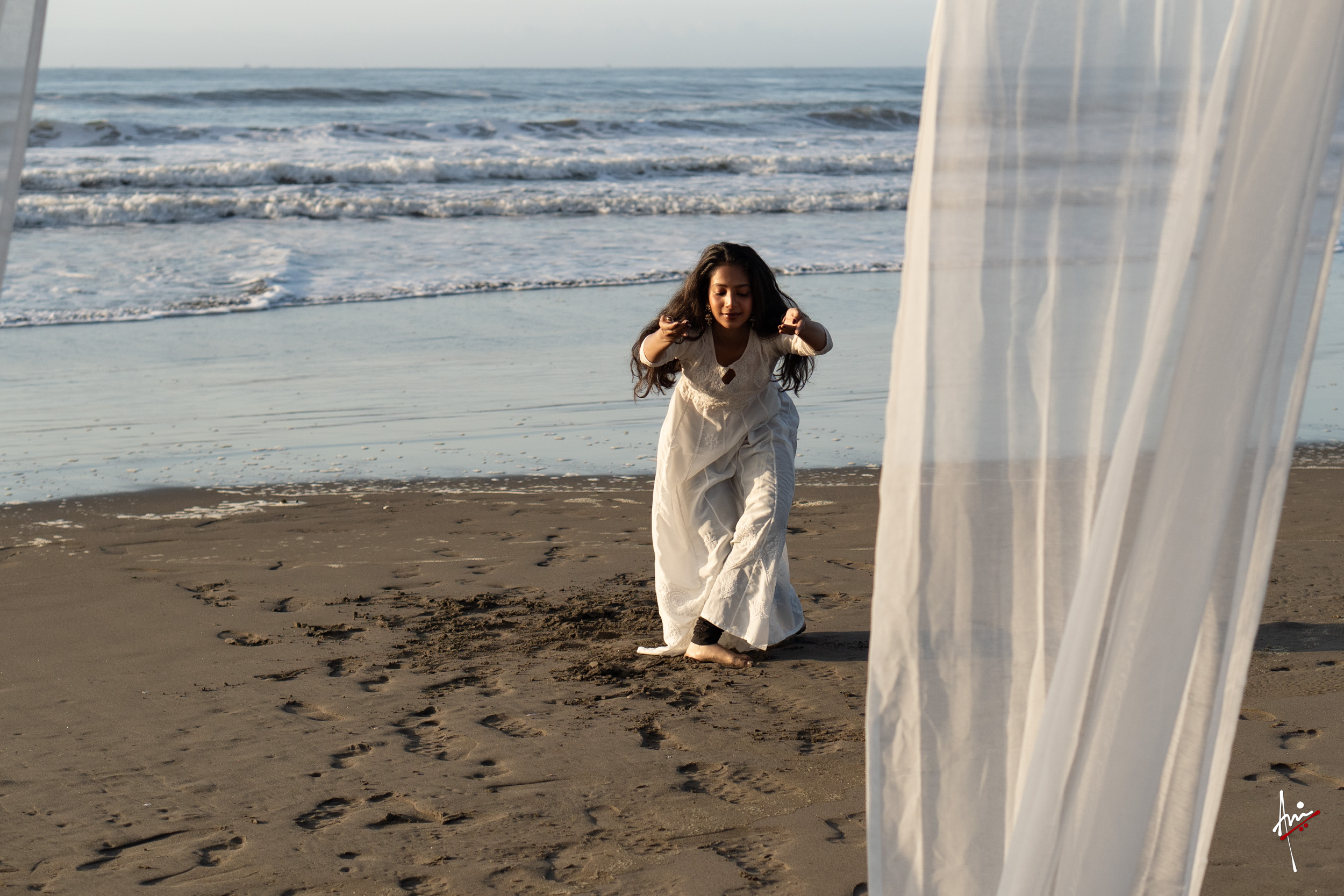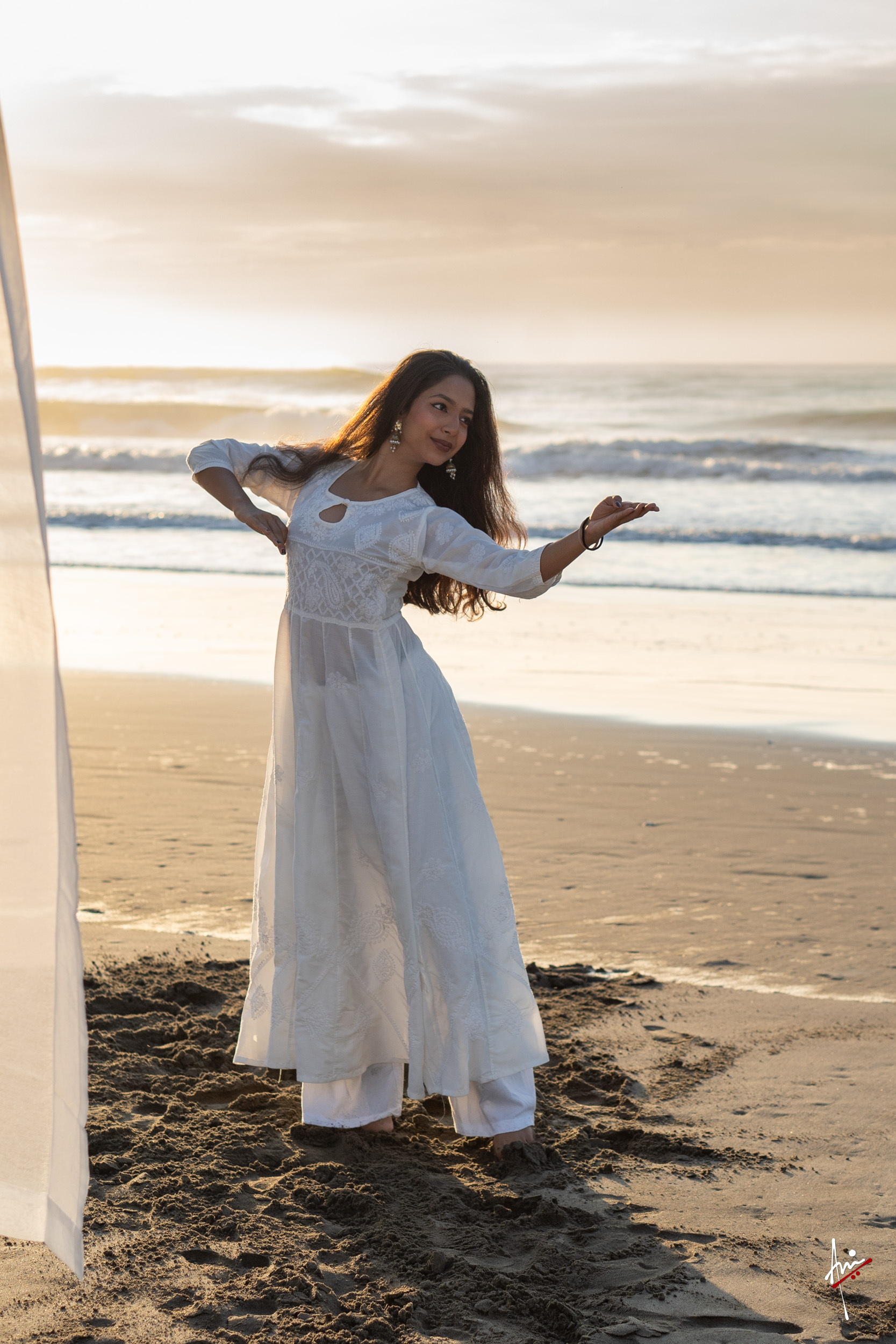 The photoshoot with Vasu, a young Kathak dancer, at Kujukuri Beach in Chiba, Japan, captures the serene beauty of the rising sun in the early morning. The soft hues of dawn blend seamlessly with the vast expanse of the ocean and the rhythmic dance of the waves. Against this natural backdrop, Vasu’s classical Kathak dance form comes to life, showcasing her grace, impeccable posture, and artistic flair. Her movements harmonise with the gentle ebb and flow of the sea, creating a captivating visual narrative that celebrates both the tranquillity of nature and the timeless elegance of Kathak.