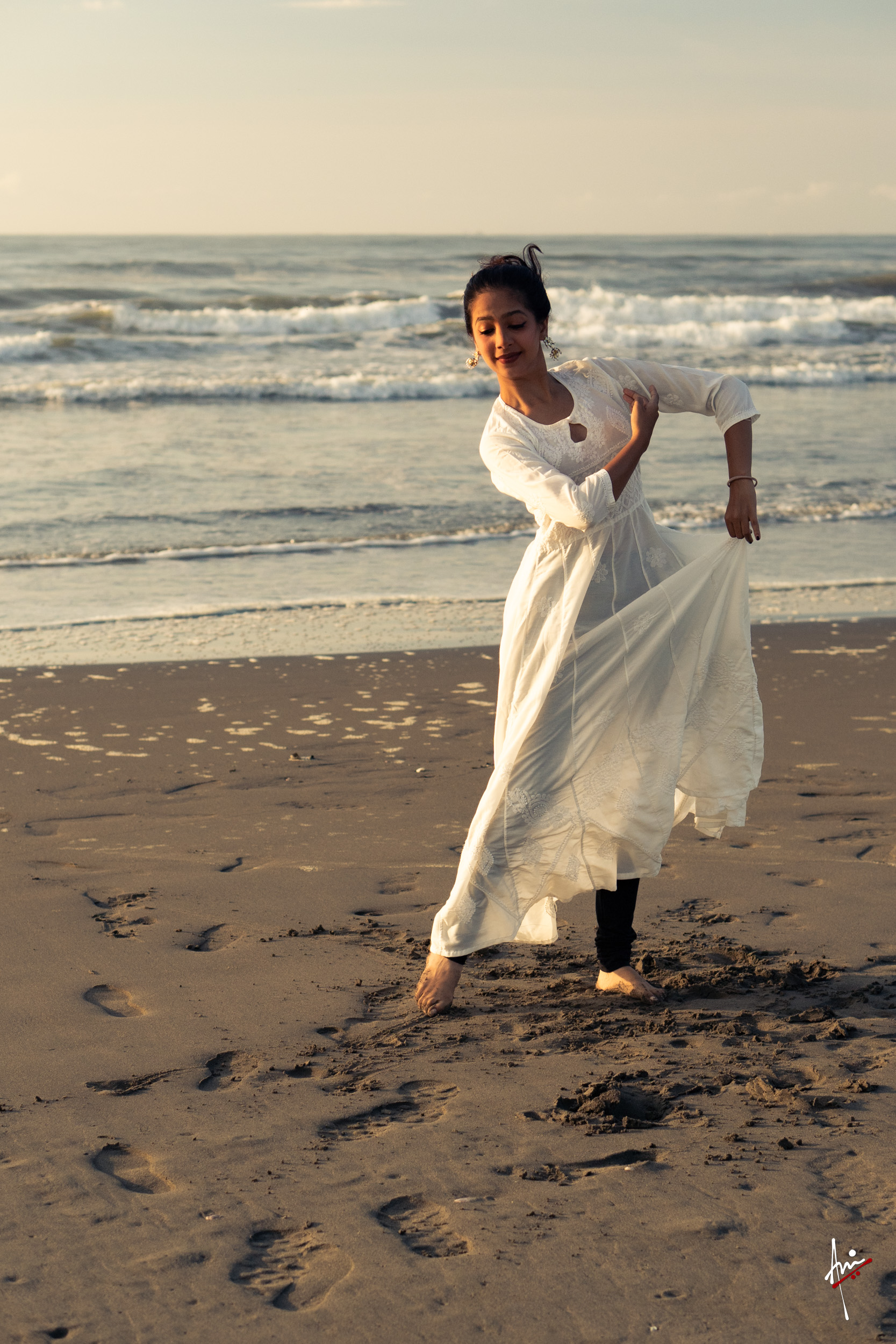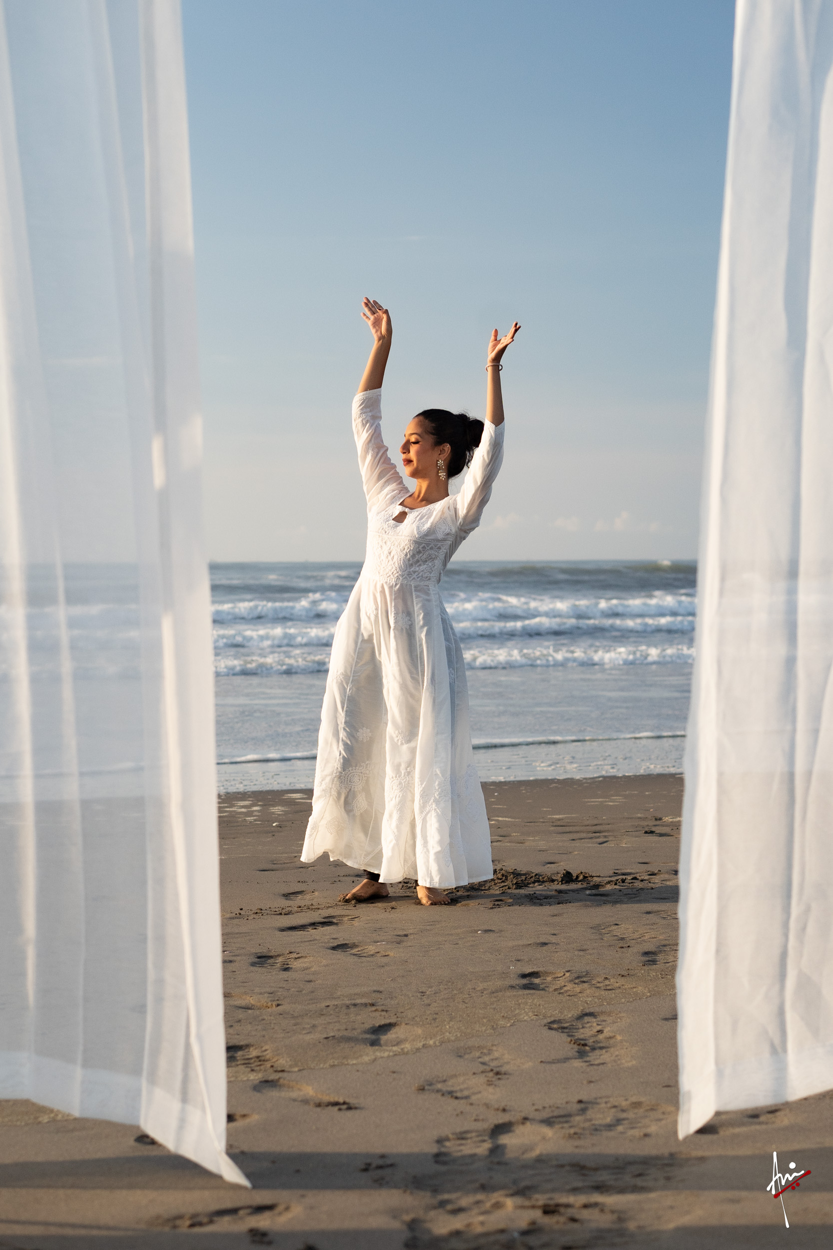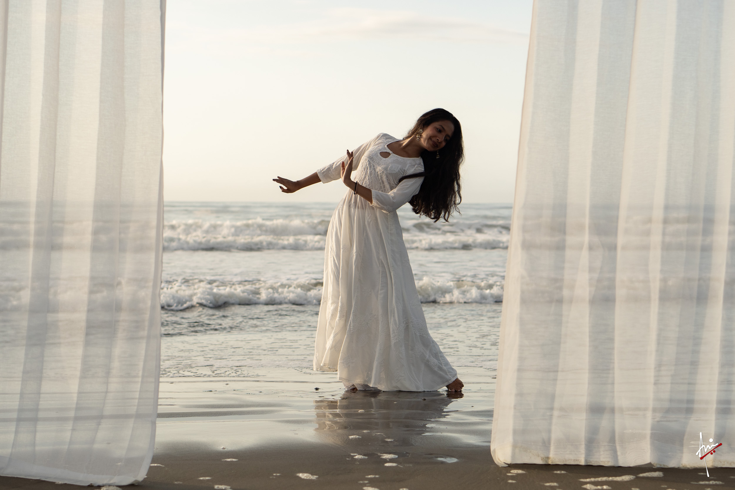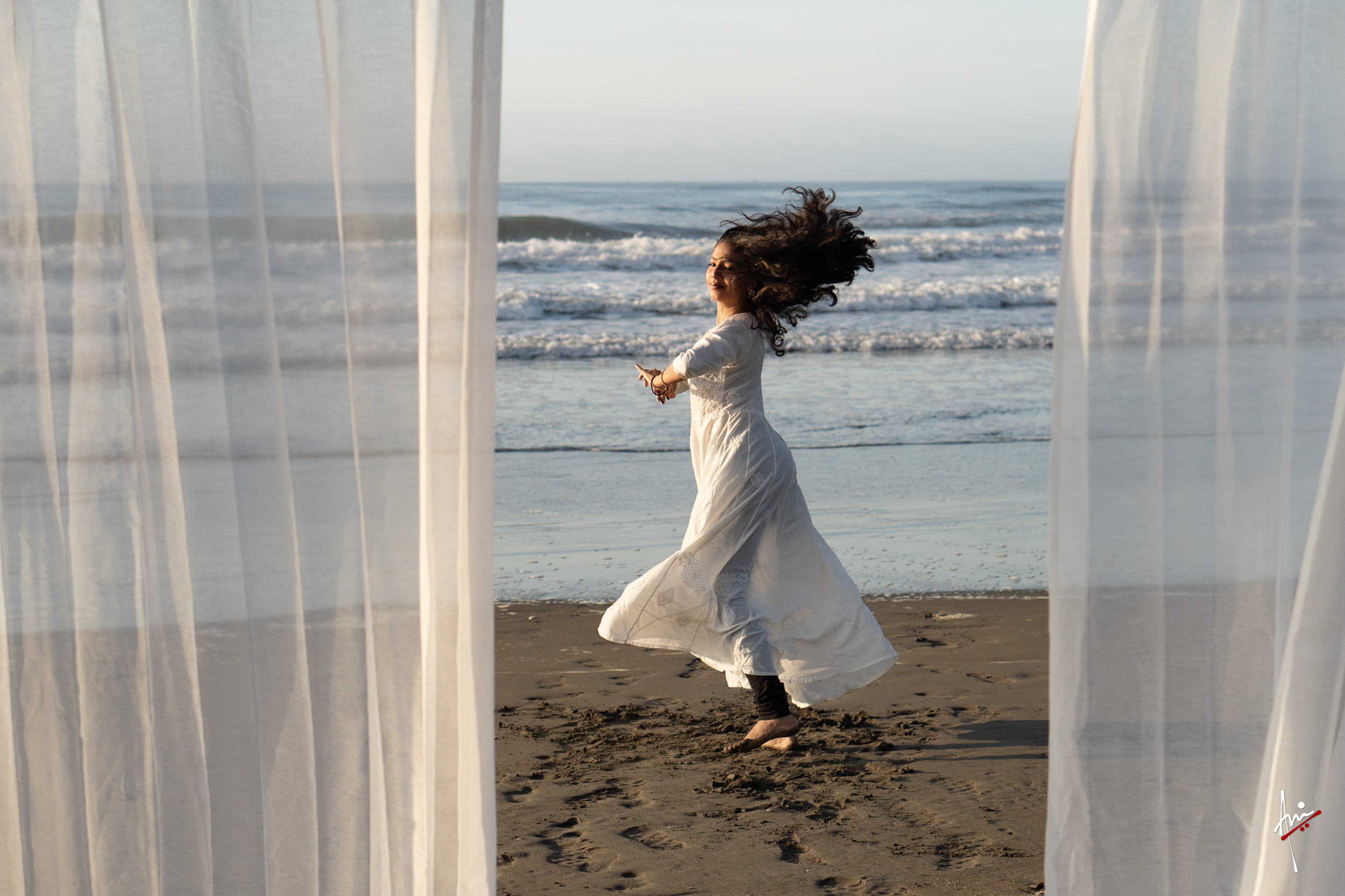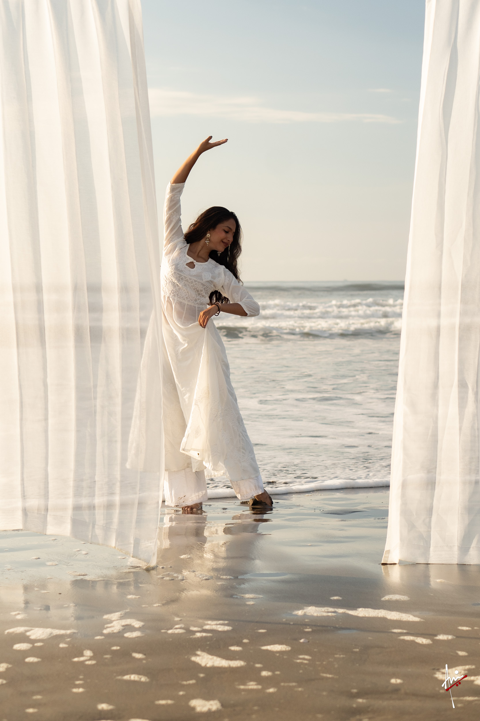 The photoshoot with Vasu, a young Kathak dancer, at Kujukuri Beach in Chiba, Japan, captures the serene beauty of the rising sun in the early morning. The soft hues of dawn blend seamlessly with the vast expanse of the ocean and the rhythmic dance of the waves. Against this natural backdrop, Vasu’s classical Kathak dance form comes to life, showcasing her grace, impeccable posture, and artistic flair. Her movements harmonise with the gentle ebb and flow of the sea, creating a captivating visual narrative that celebrates both the tranquillity of nature and the timeless elegance of Kathak.