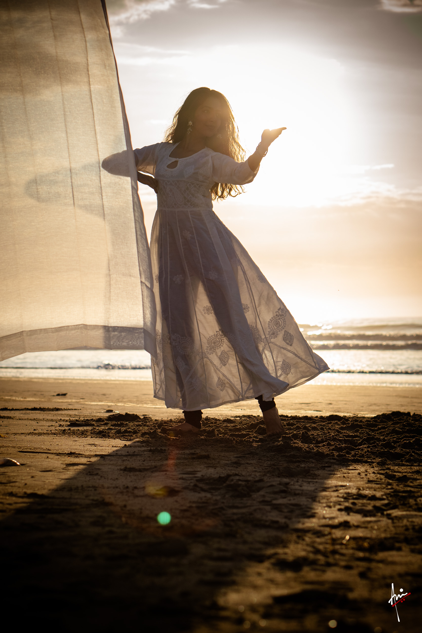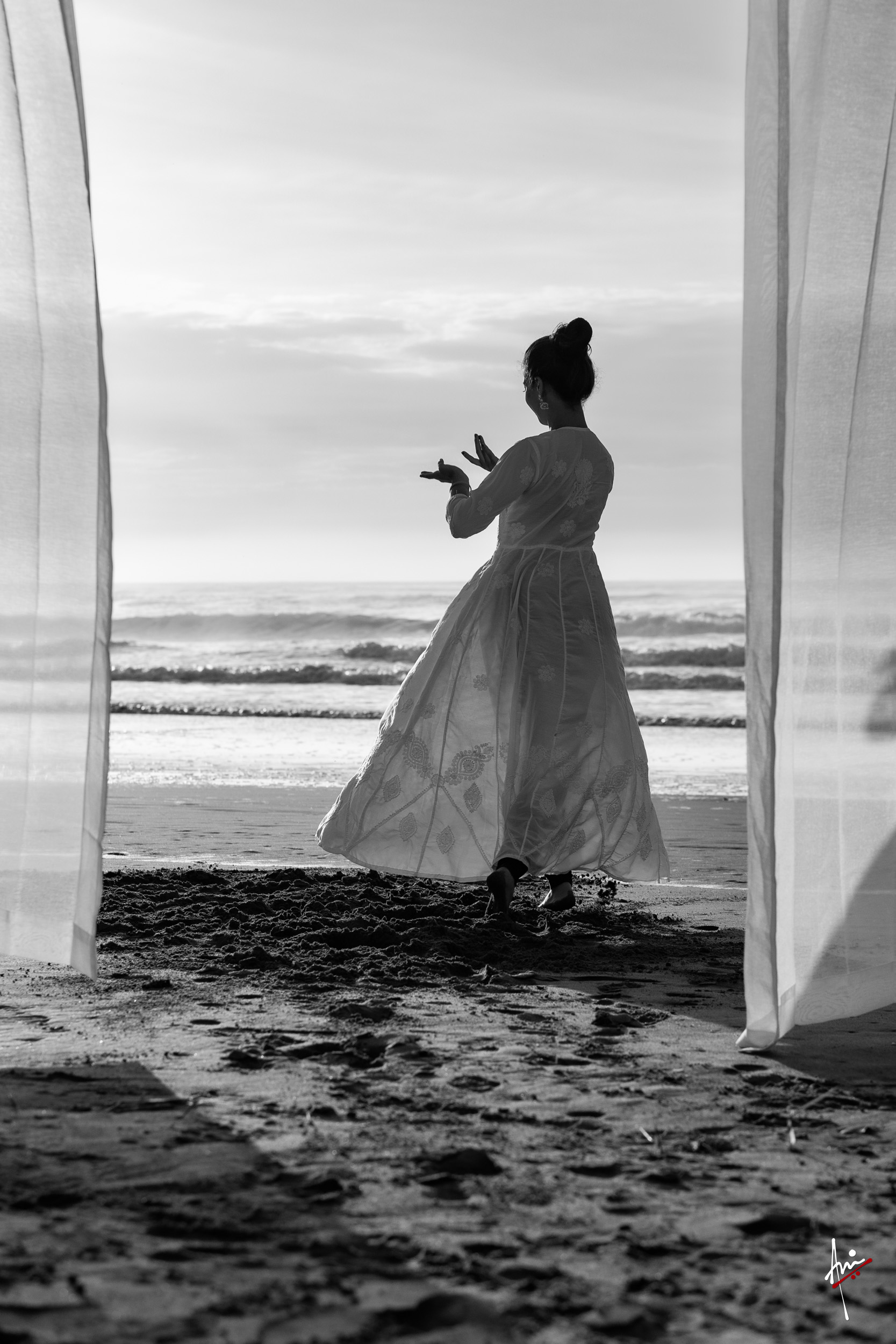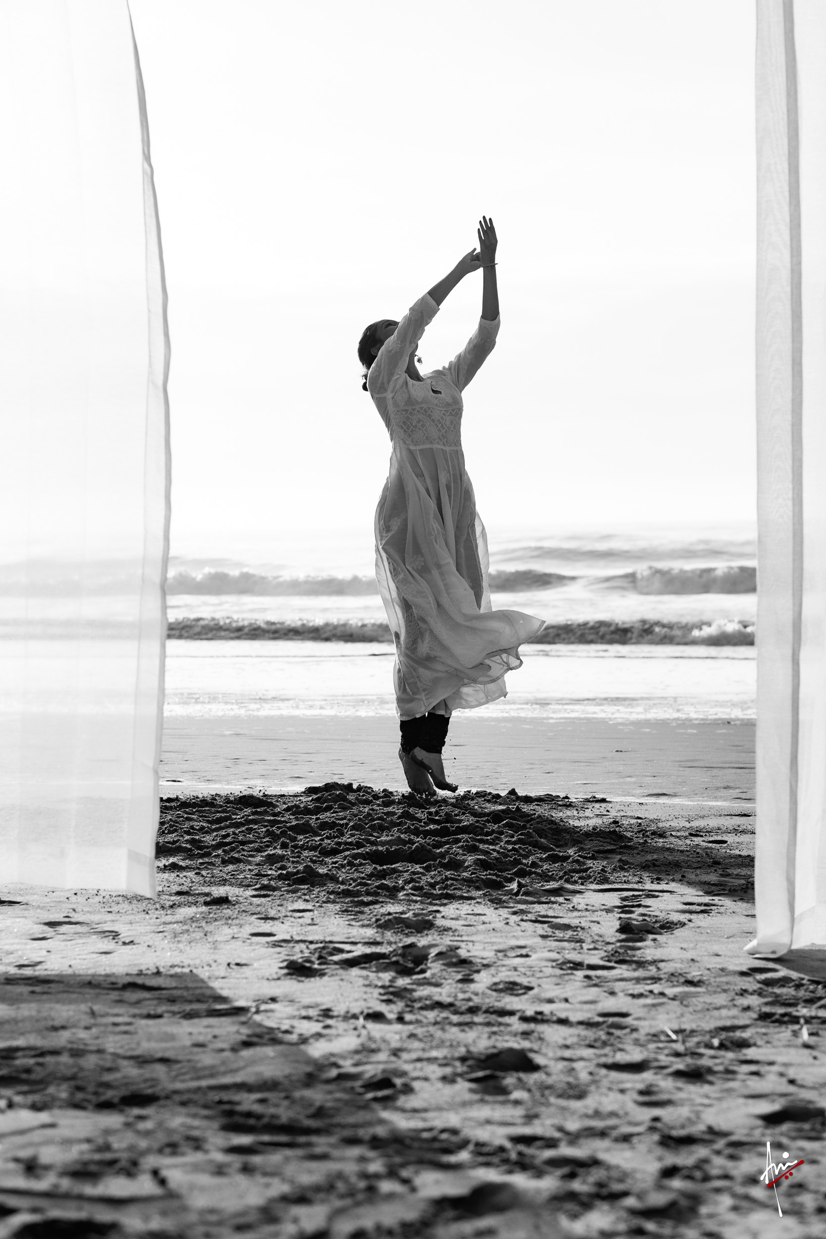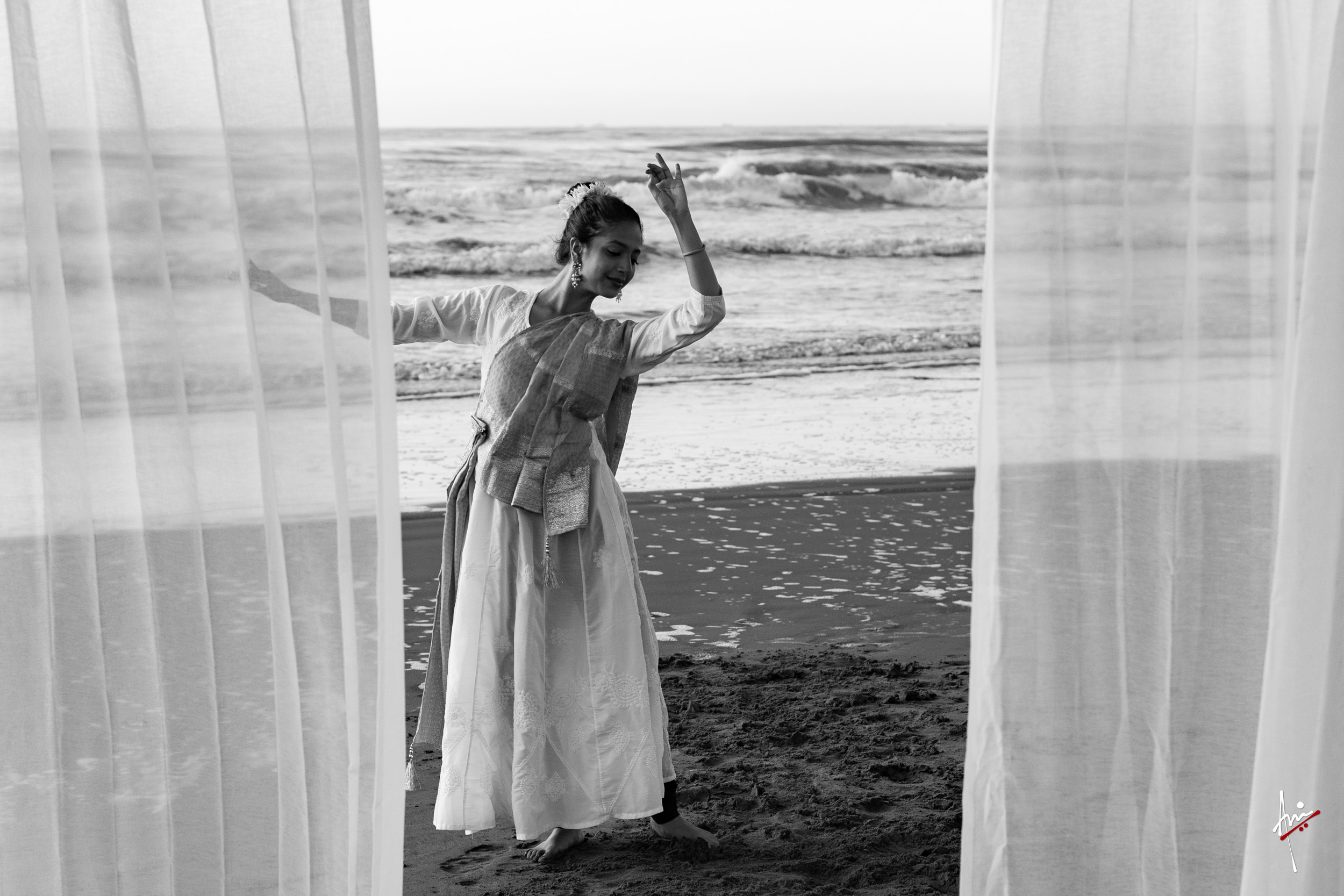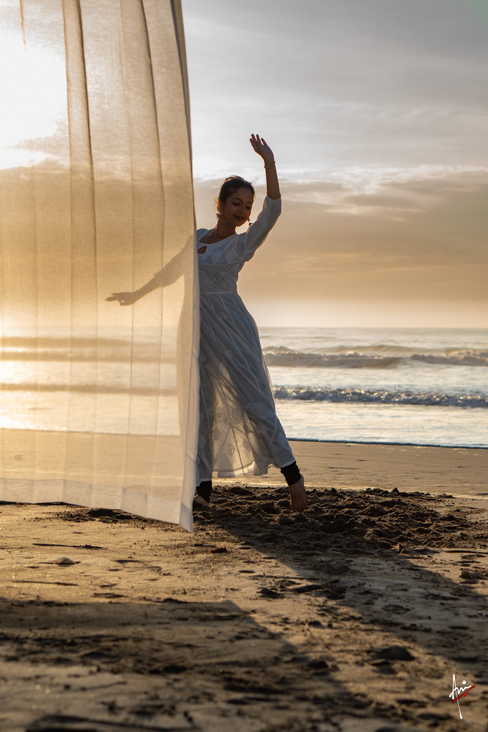 The photoshoot with Vasu, a young Kathak dancer, at Kujukuri Beach in Chiba, Japan, captures the serene beauty of the rising sun in the early morning. The soft hues of dawn blend seamlessly with the vast expanse of the ocean and the rhythmic dance of the waves. Against this natural backdrop, Vasu’s classical Kathak dance form comes to life, showcasing her grace, impeccable posture, and artistic flair. Her movements harmonise with the gentle ebb and flow of the sea, creating a captivating visual narrative that celebrates both the tranquillity of nature and the timeless elegance of Kathak.