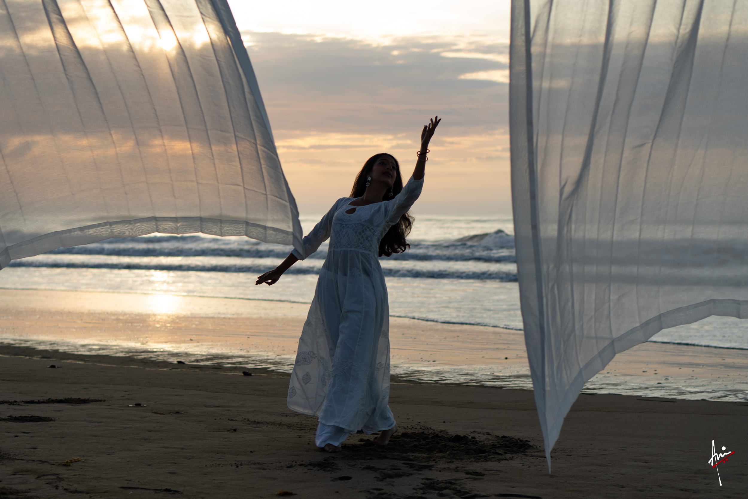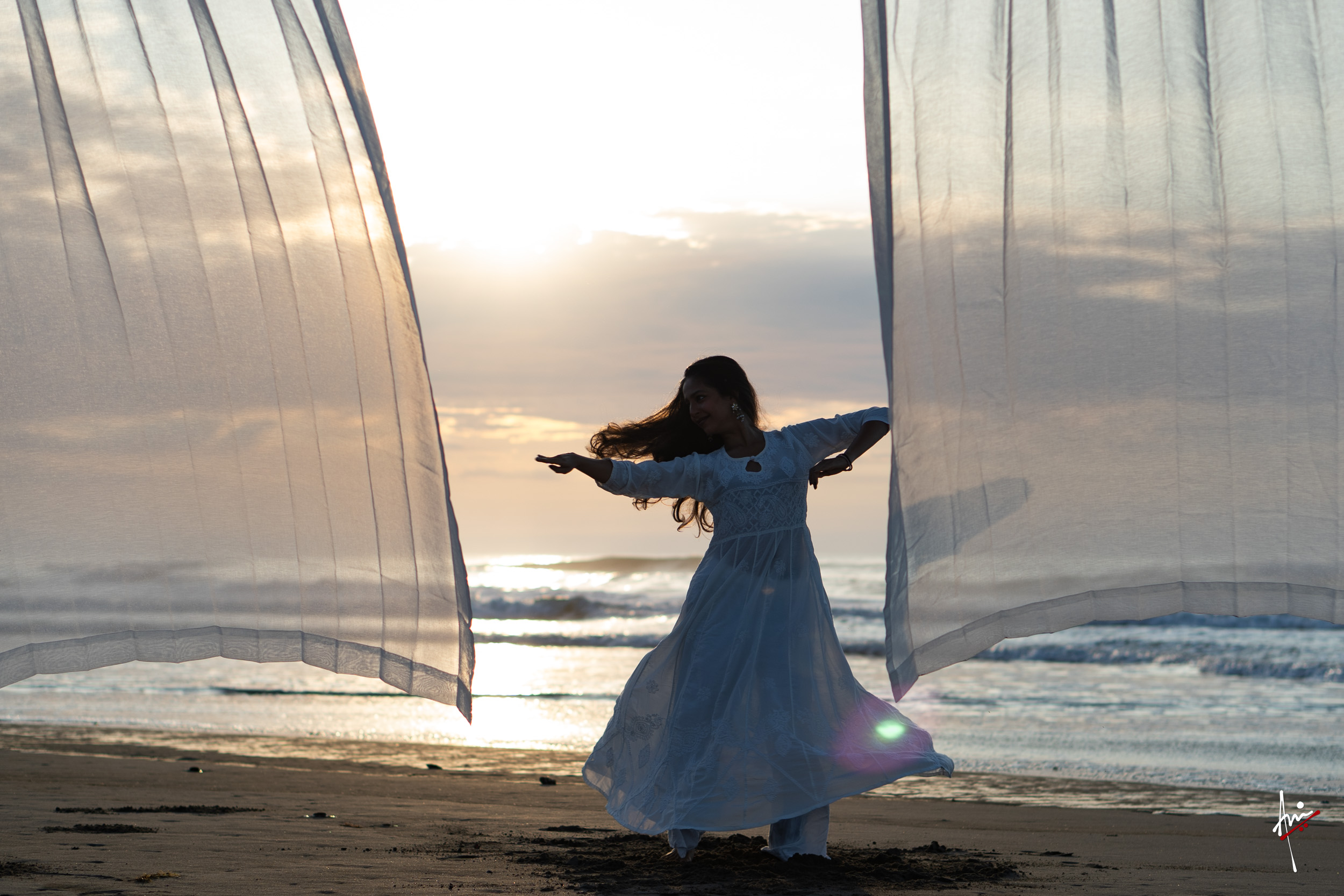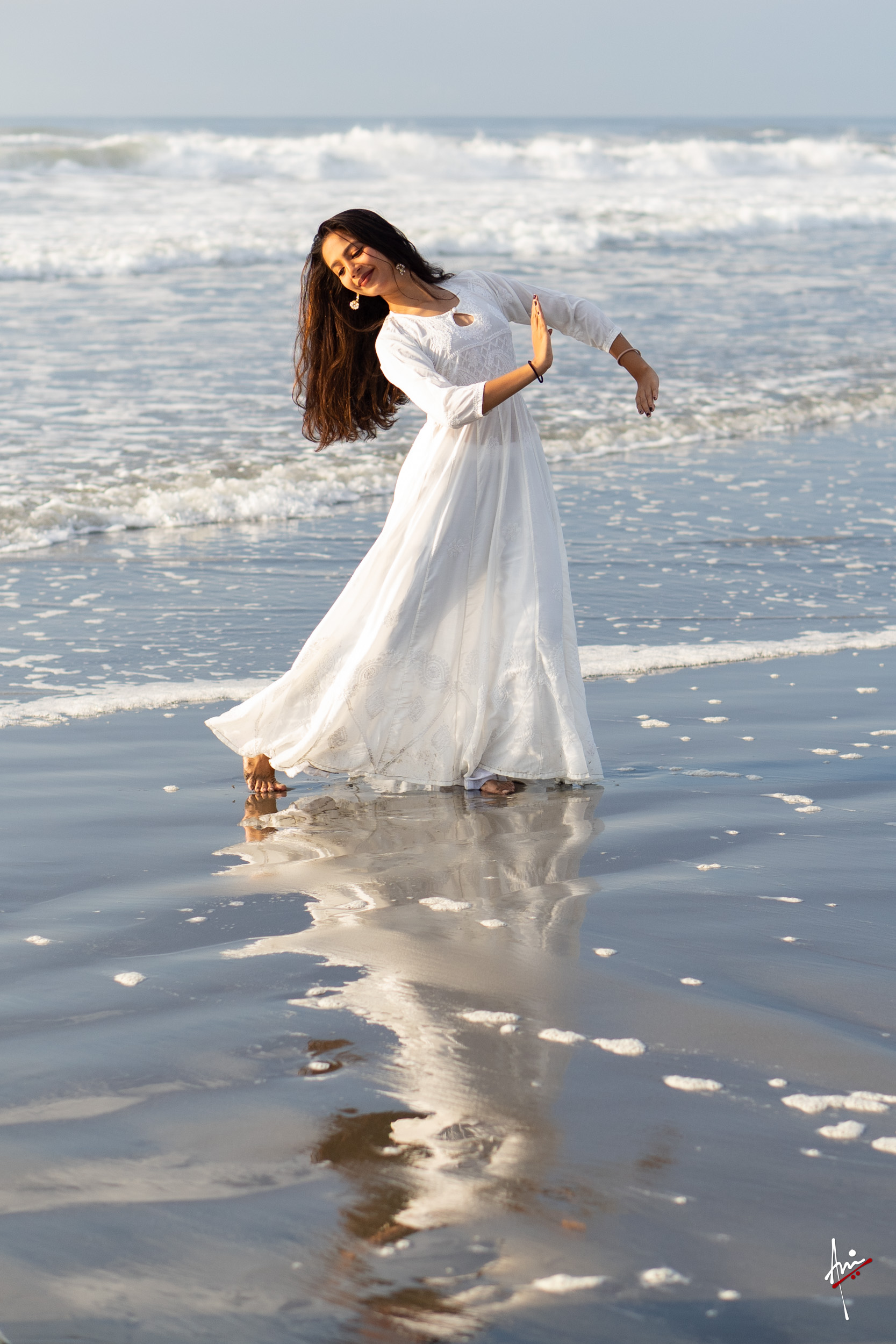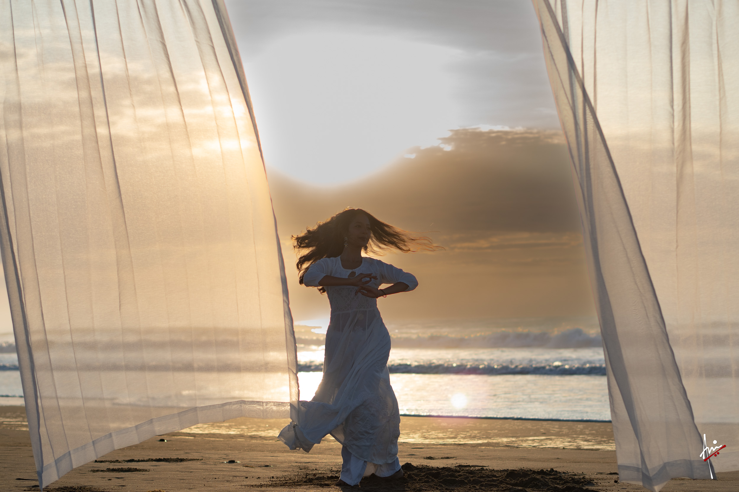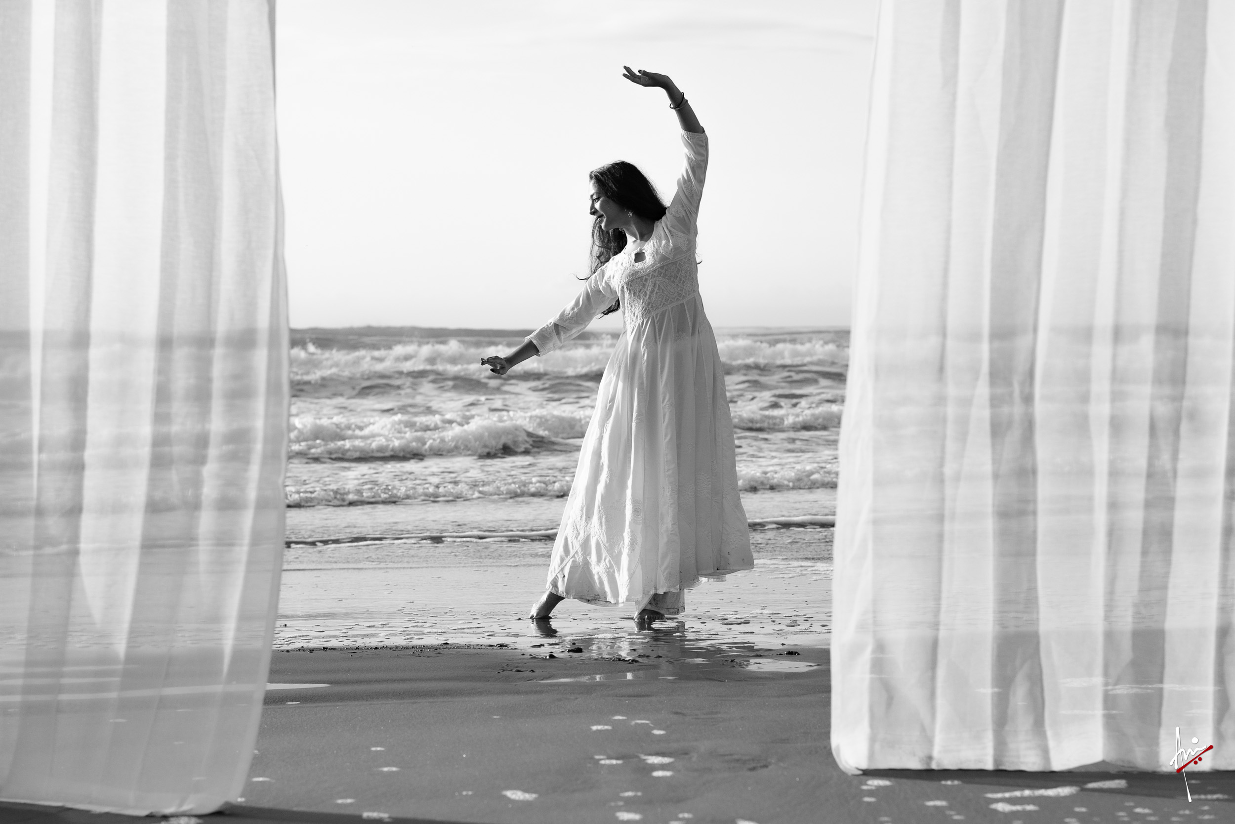 The photoshoot with Vasu, a young Kathak dancer, at Kujukuri Beach in Chiba, Japan, captures the serene beauty of the rising sun in the early morning. The soft hues of dawn blend seamlessly with the vast expanse of the ocean and the rhythmic dance of the waves. Against this natural backdrop, Vasu’s classical Kathak dance form comes to life, showcasing her grace, impeccable posture, and artistic flair. Her movements harmonise with the gentle ebb and flow of the sea, creating a captivating visual narrative that celebrates both the tranquillity of nature and the timeless elegance of Kathak.