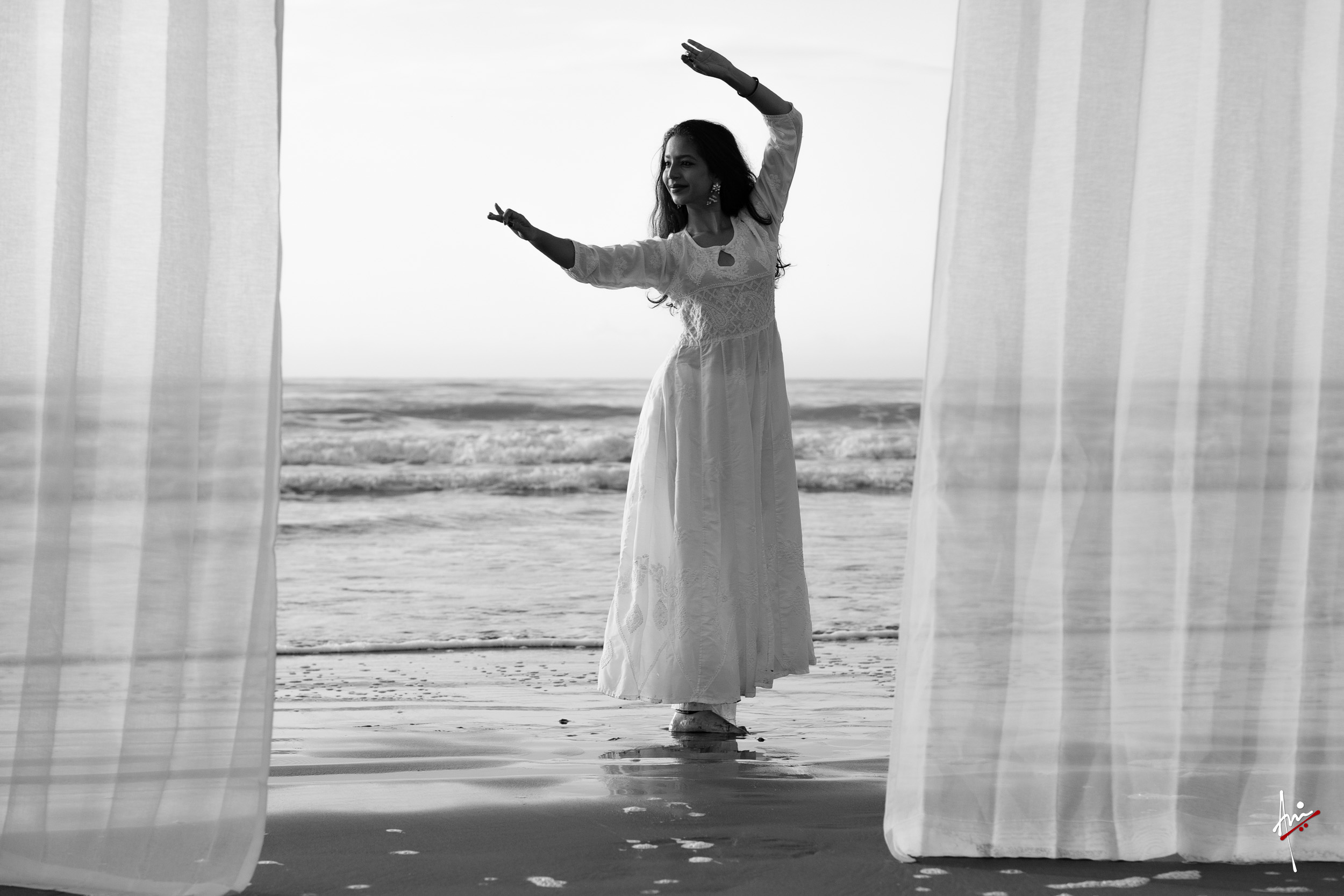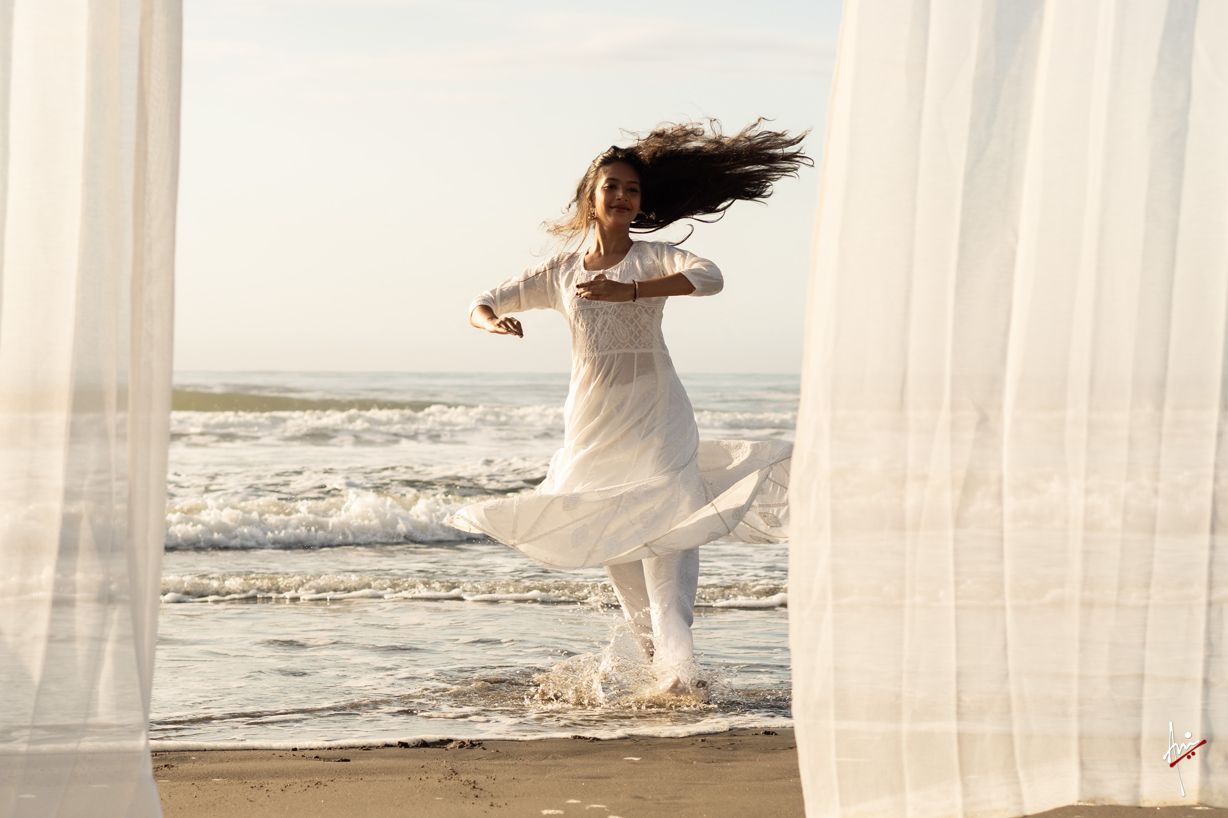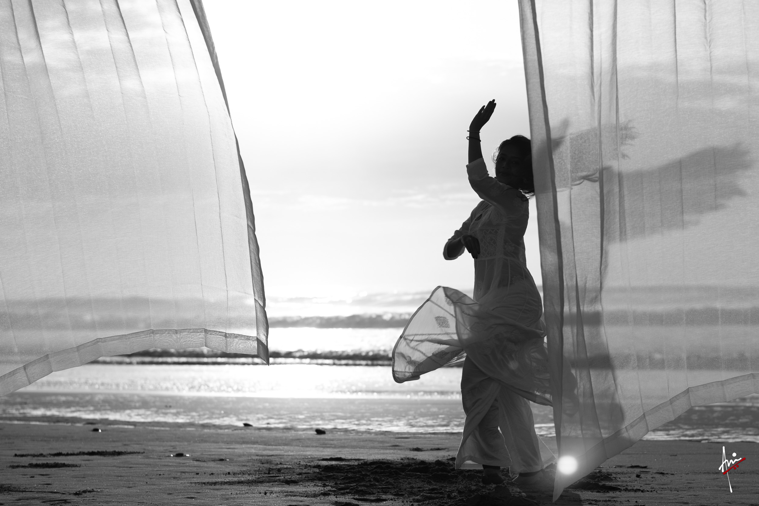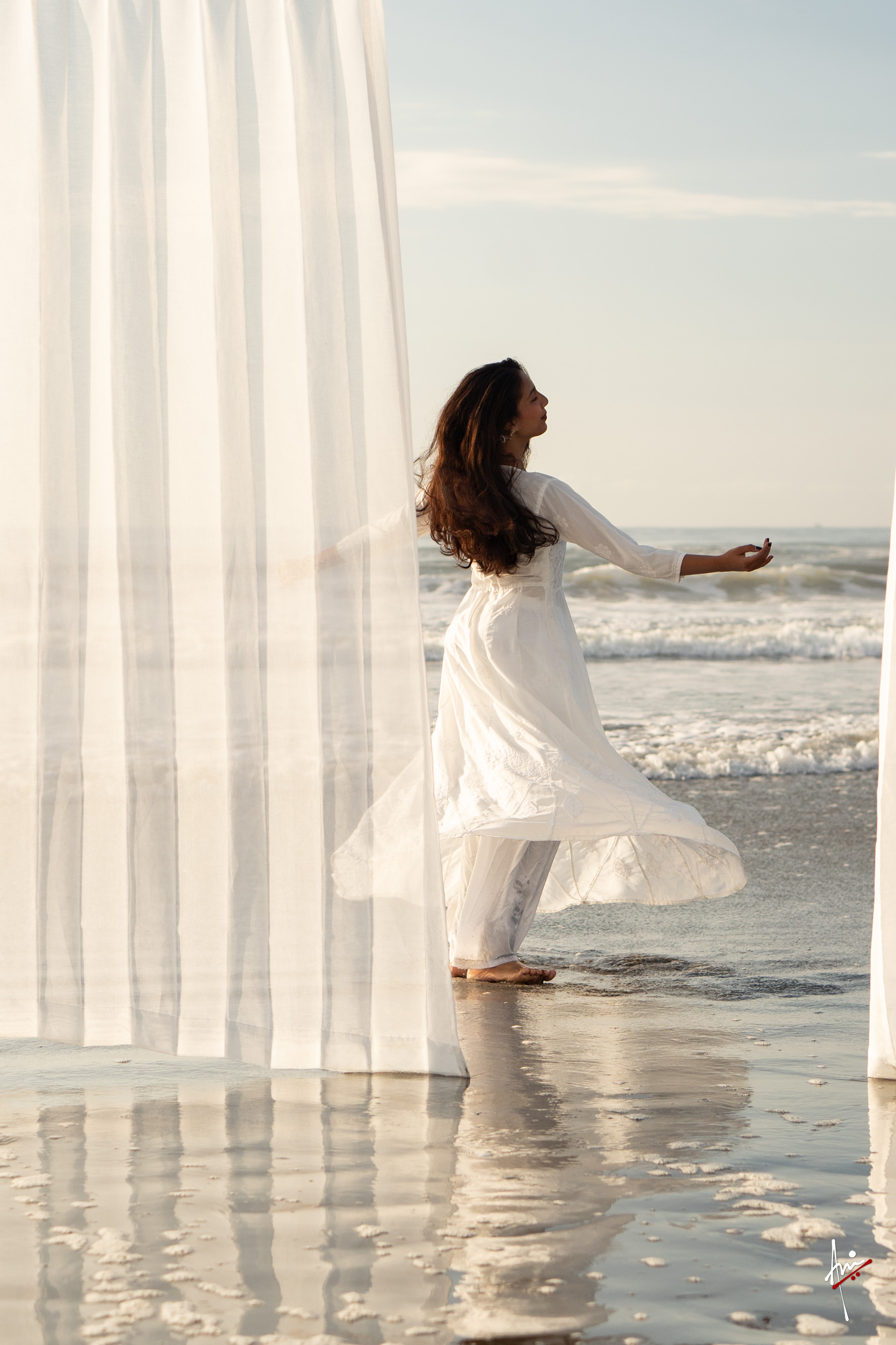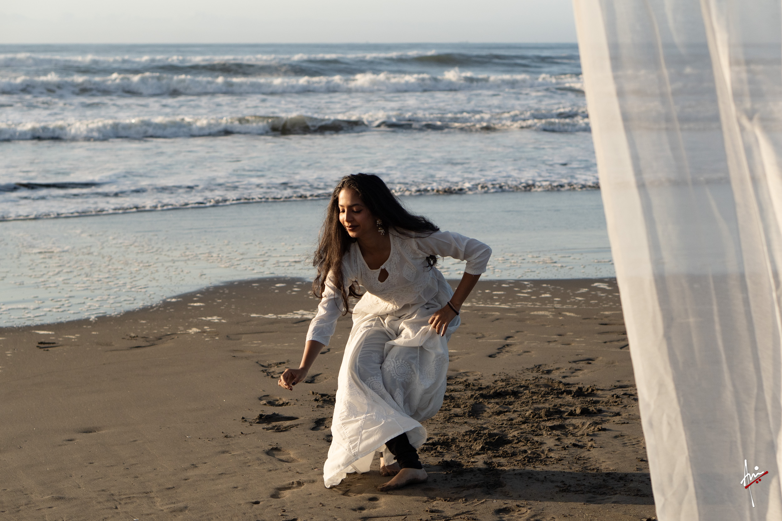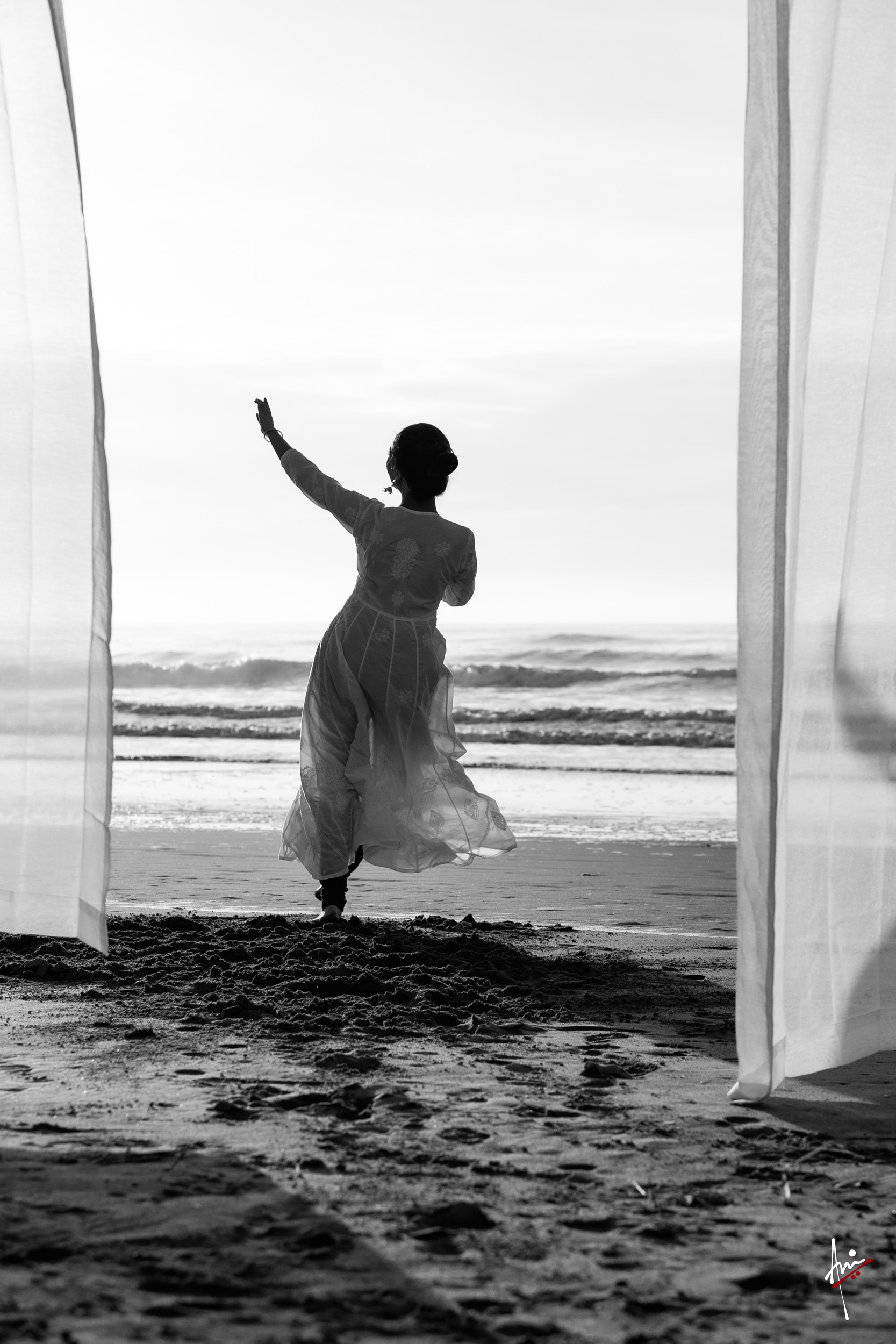 The photoshoot with Vasu, a young Kathak dancer, at Kujukuri Beach in Chiba, Japan, captures the serene beauty of the rising sun in the early morning. The soft hues of dawn blend seamlessly with the vast expanse of the ocean and the rhythmic dance of the waves. Against this natural backdrop, Vasu’s classical Kathak dance form comes to life, showcasing her grace, impeccable posture, and artistic flair. Her movements harmonise with the gentle ebb and flow of the sea, creating a captivating visual narrative that celebrates both the tranquillity of nature and the timeless elegance of Kathak.