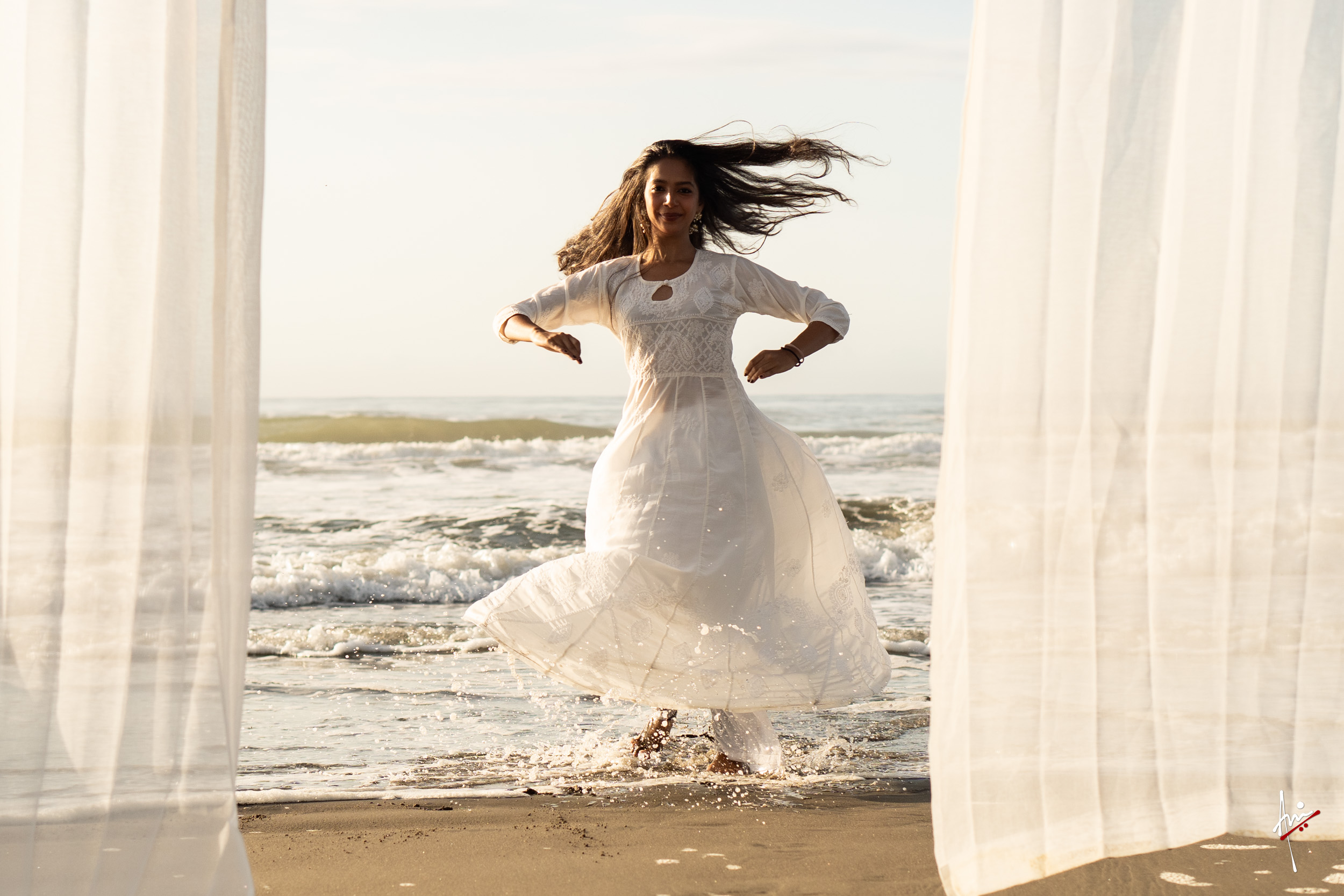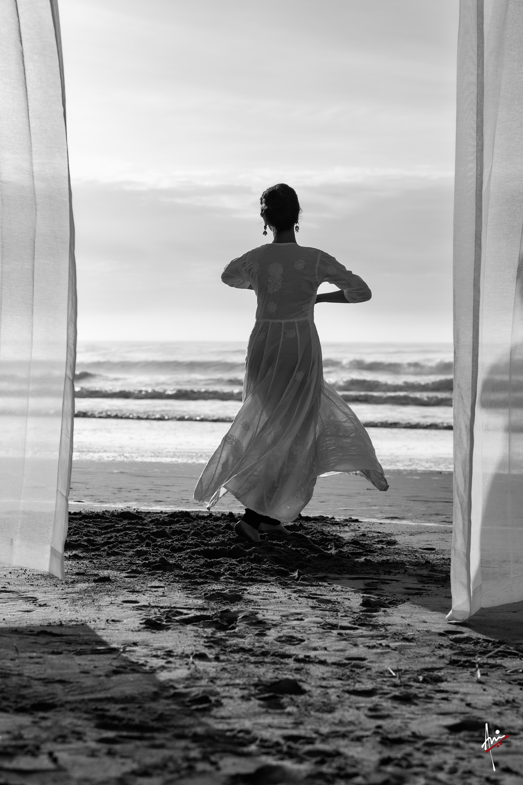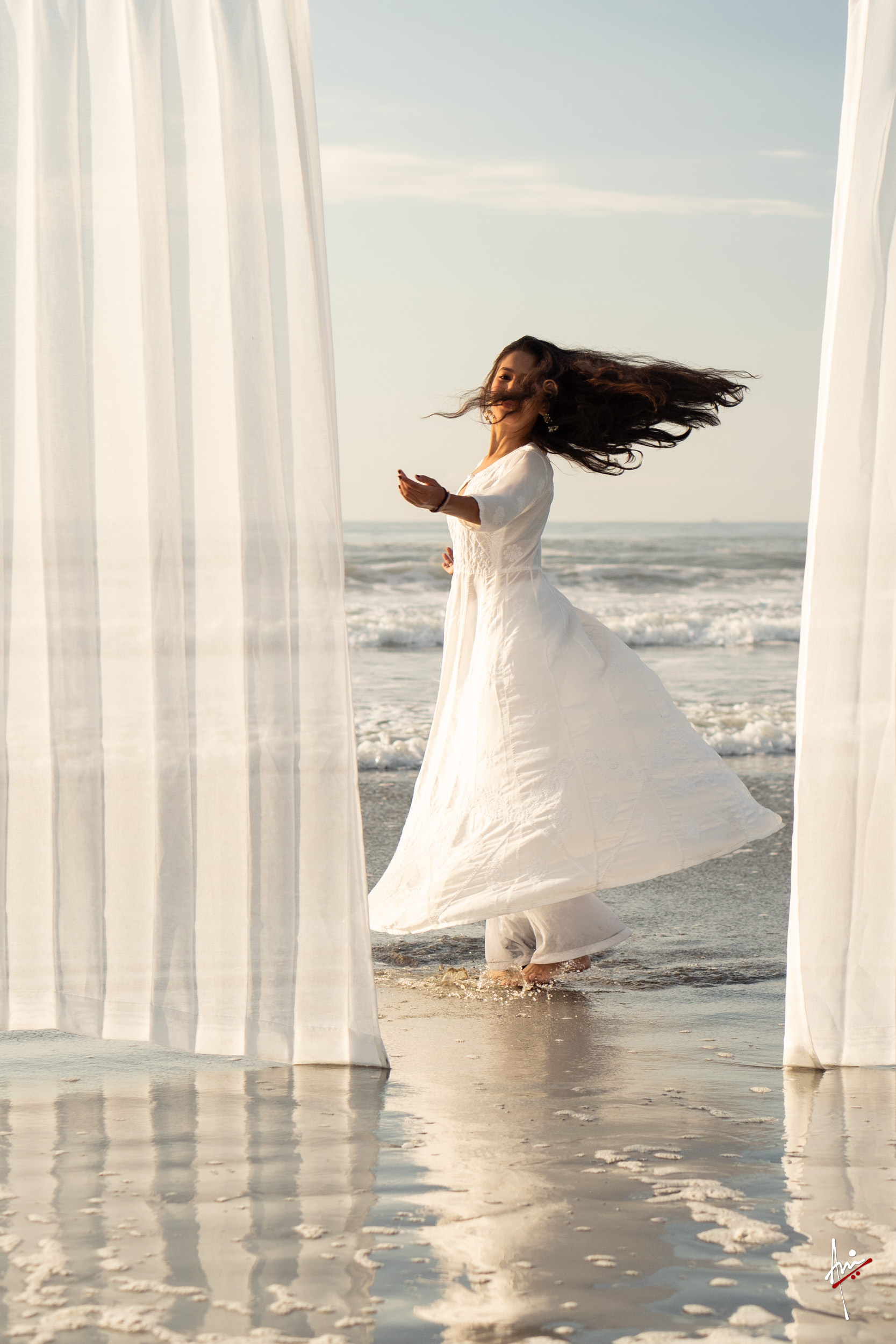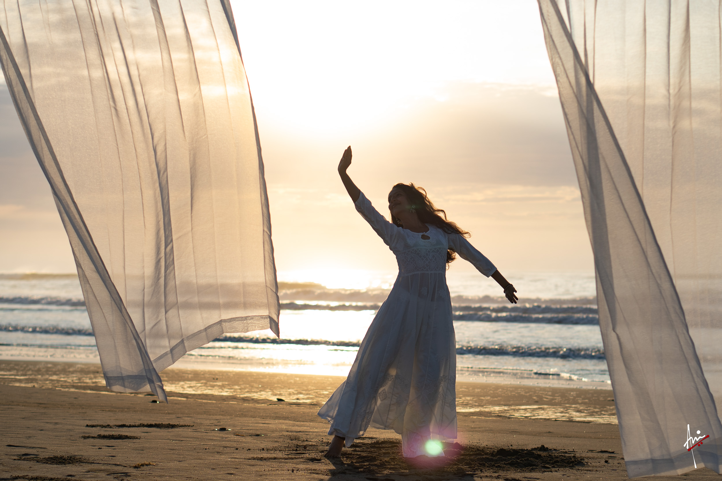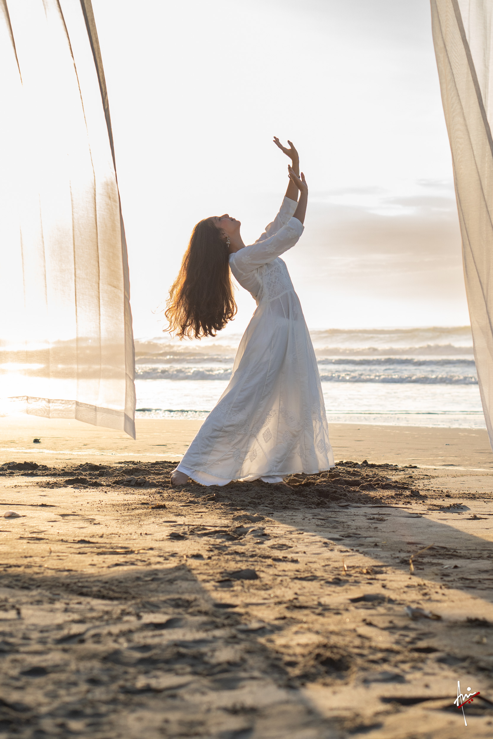 The photoshoot with Vasu, a young Kathak dancer, at Kujukuri Beach in Chiba, Japan, captures the serene beauty of the rising sun in the early morning. The soft hues of dawn blend seamlessly with the vast expanse of the ocean and the rhythmic dance of the waves. Against this natural backdrop, Vasu’s classical Kathak dance form comes to life, showcasing her grace, impeccable posture, and artistic flair. Her movements harmonise with the gentle ebb and flow of the sea, creating a captivating visual narrative that celebrates both the tranquillity of nature and the timeless elegance of Kathak.