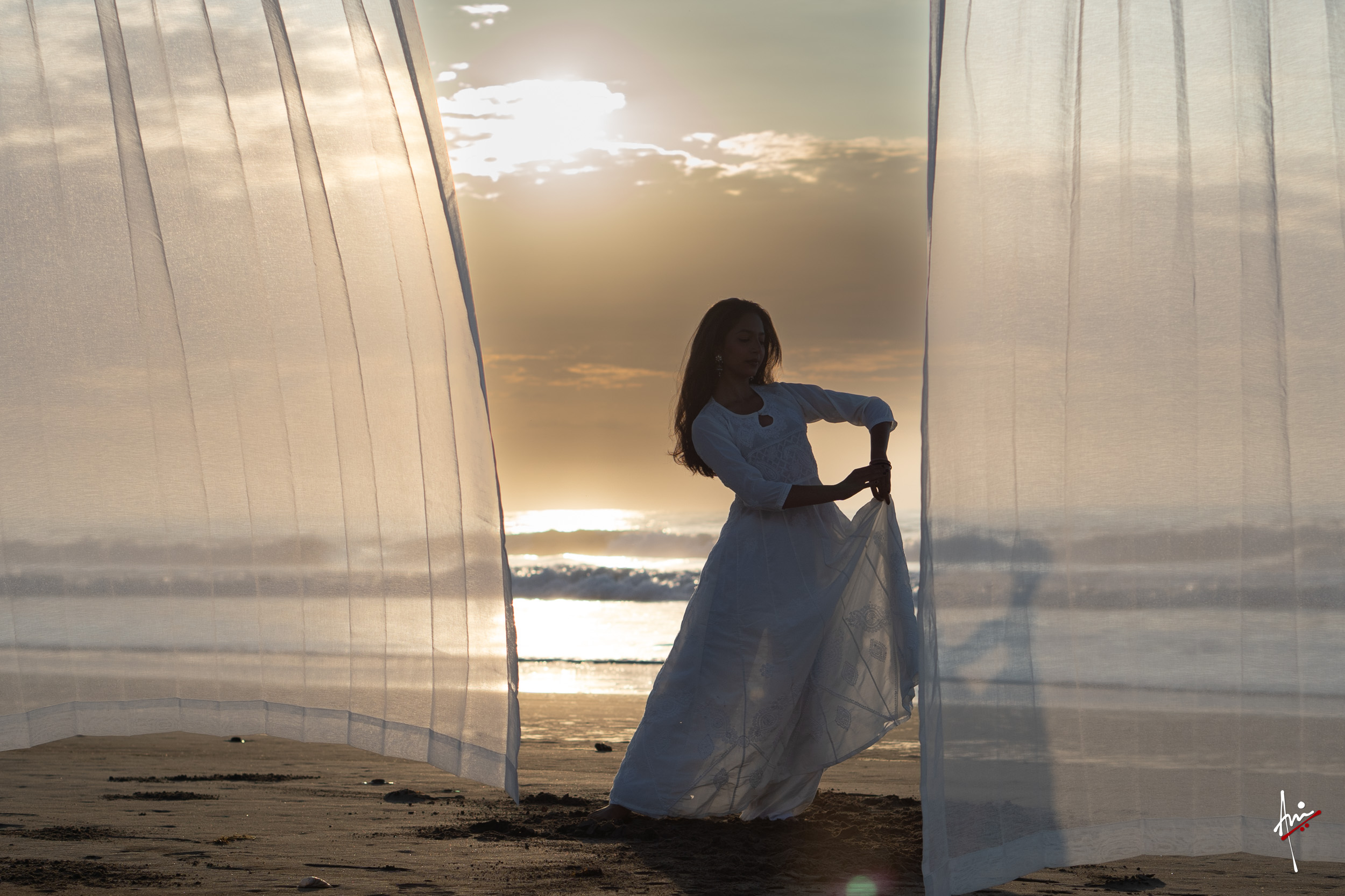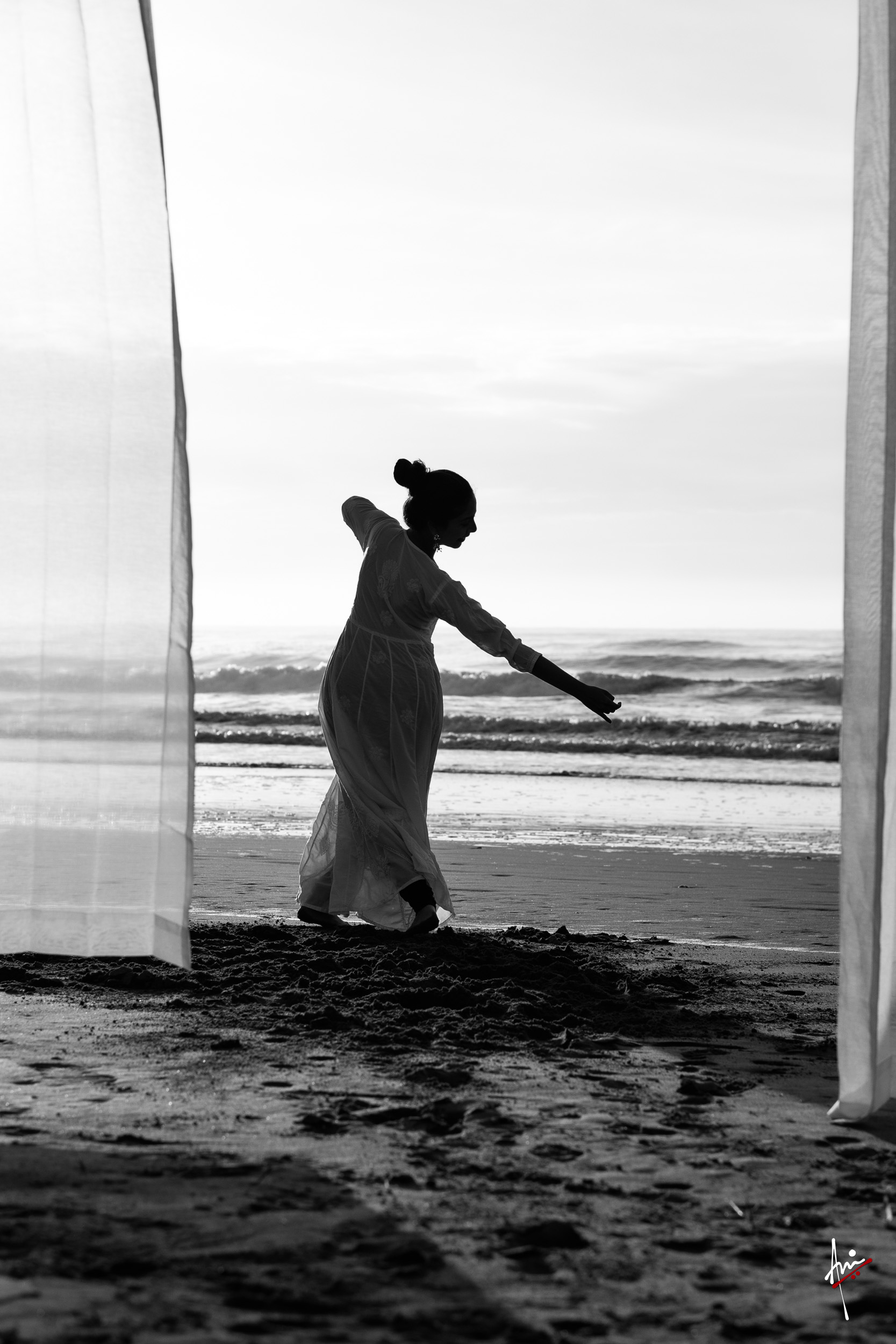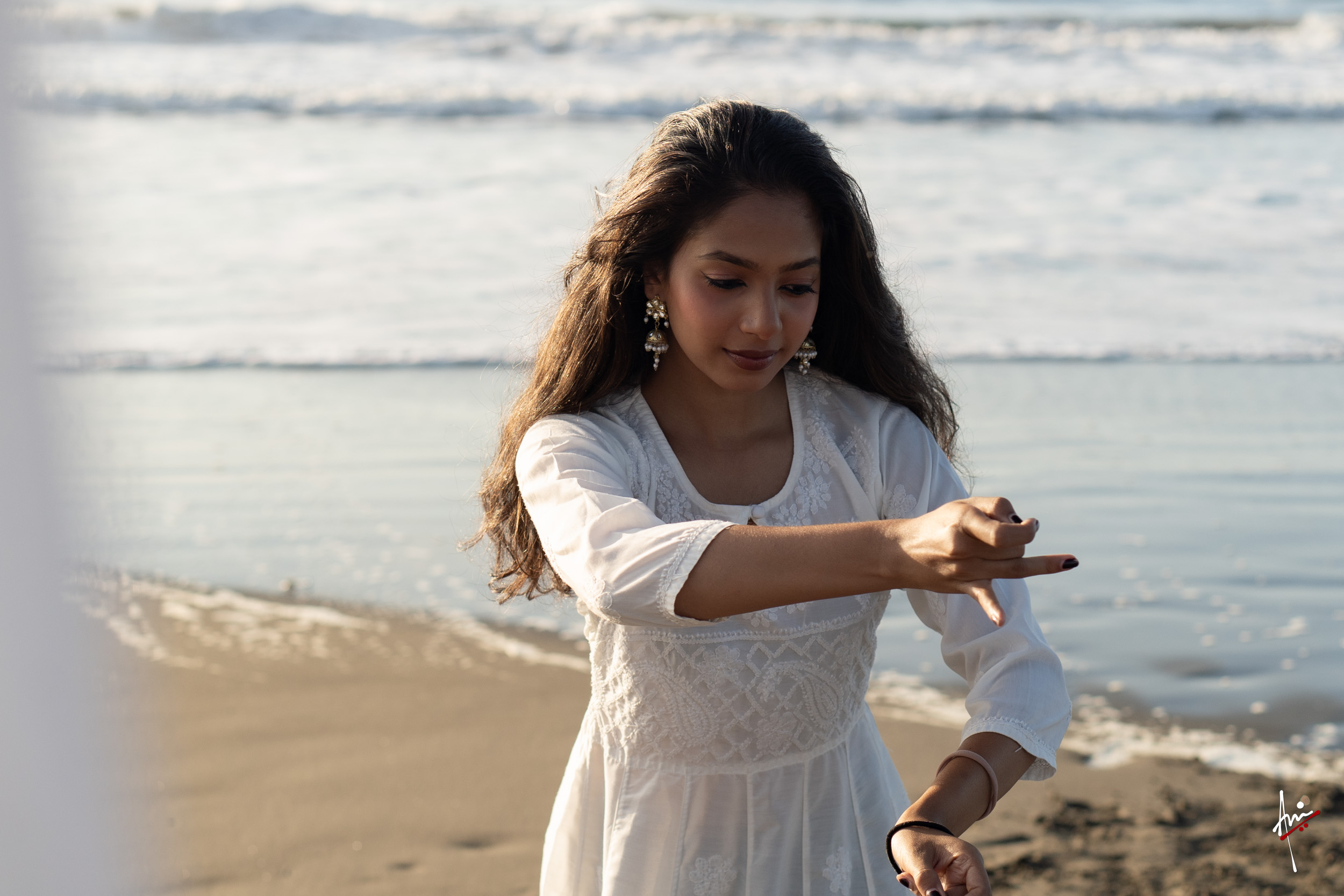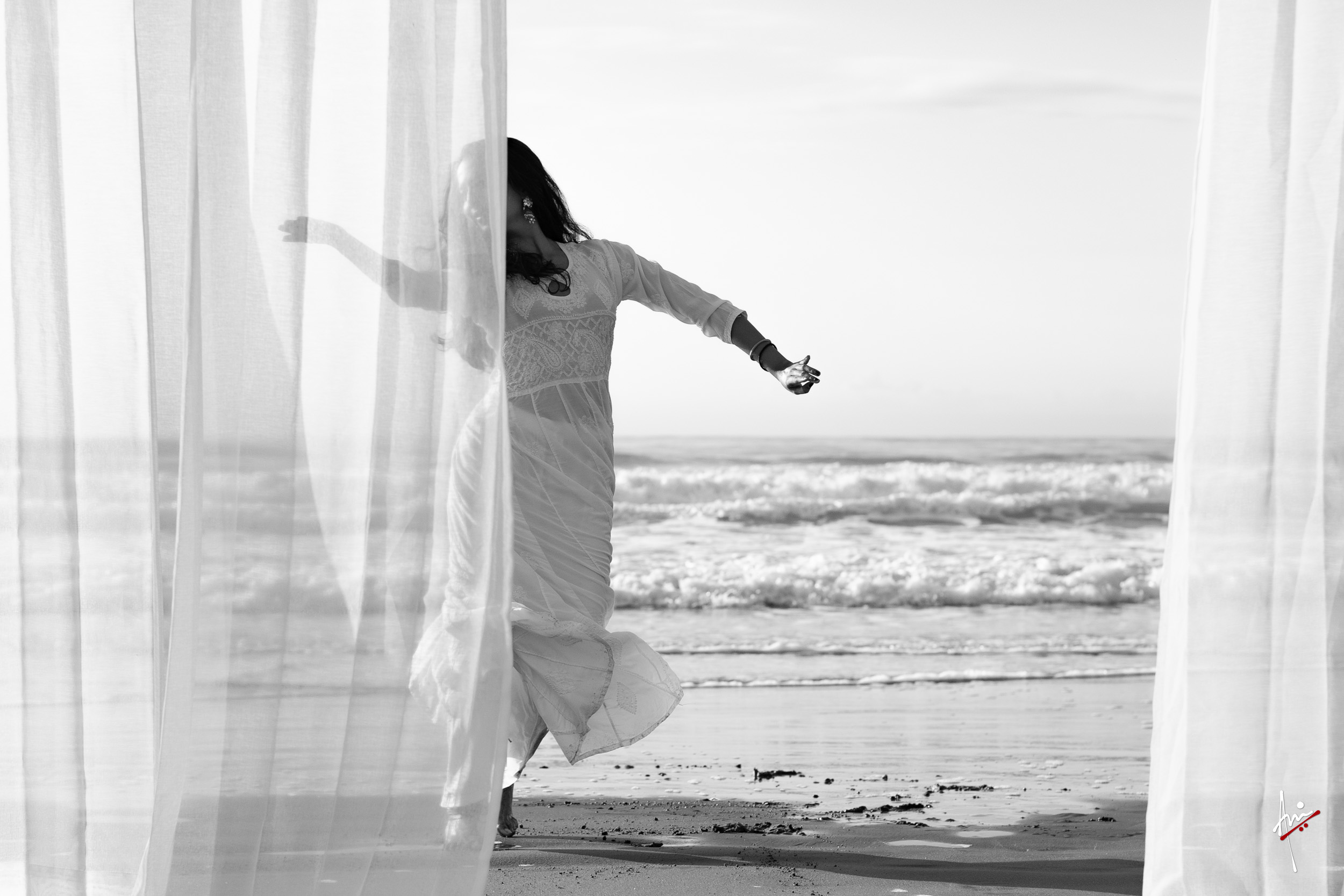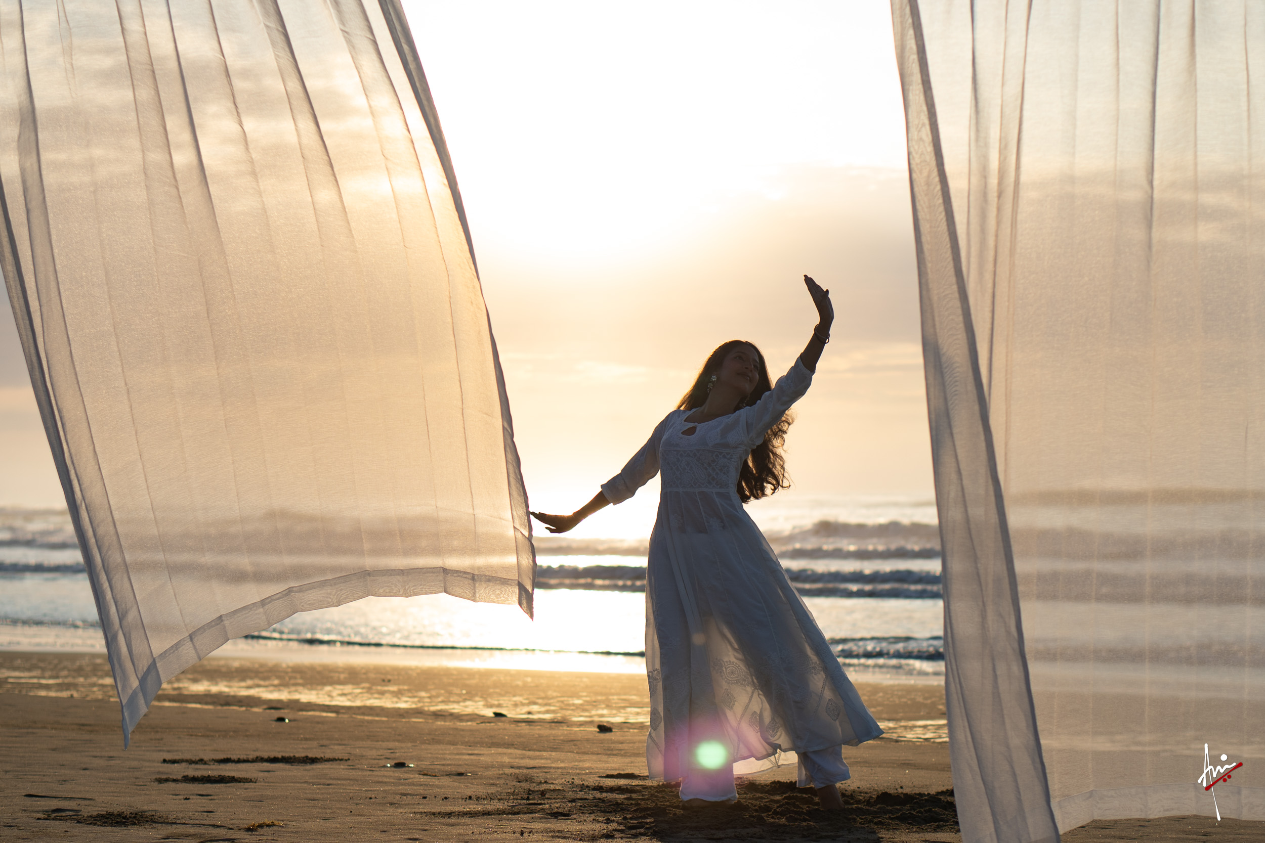 The photoshoot with Vasu, a young Kathak dancer, at Kujukuri Beach in Chiba, Japan, captures the serene beauty of the rising sun in the early morning. The soft hues of dawn blend seamlessly with the vast expanse of the ocean and the rhythmic dance of the waves. Against this natural backdrop, Vasu’s classical Kathak dance form comes to life, showcasing her grace, impeccable posture, and artistic flair. Her movements harmonise with the gentle ebb and flow of the sea, creating a captivating visual narrative that celebrates both the tranquillity of nature and the timeless elegance of Kathak.