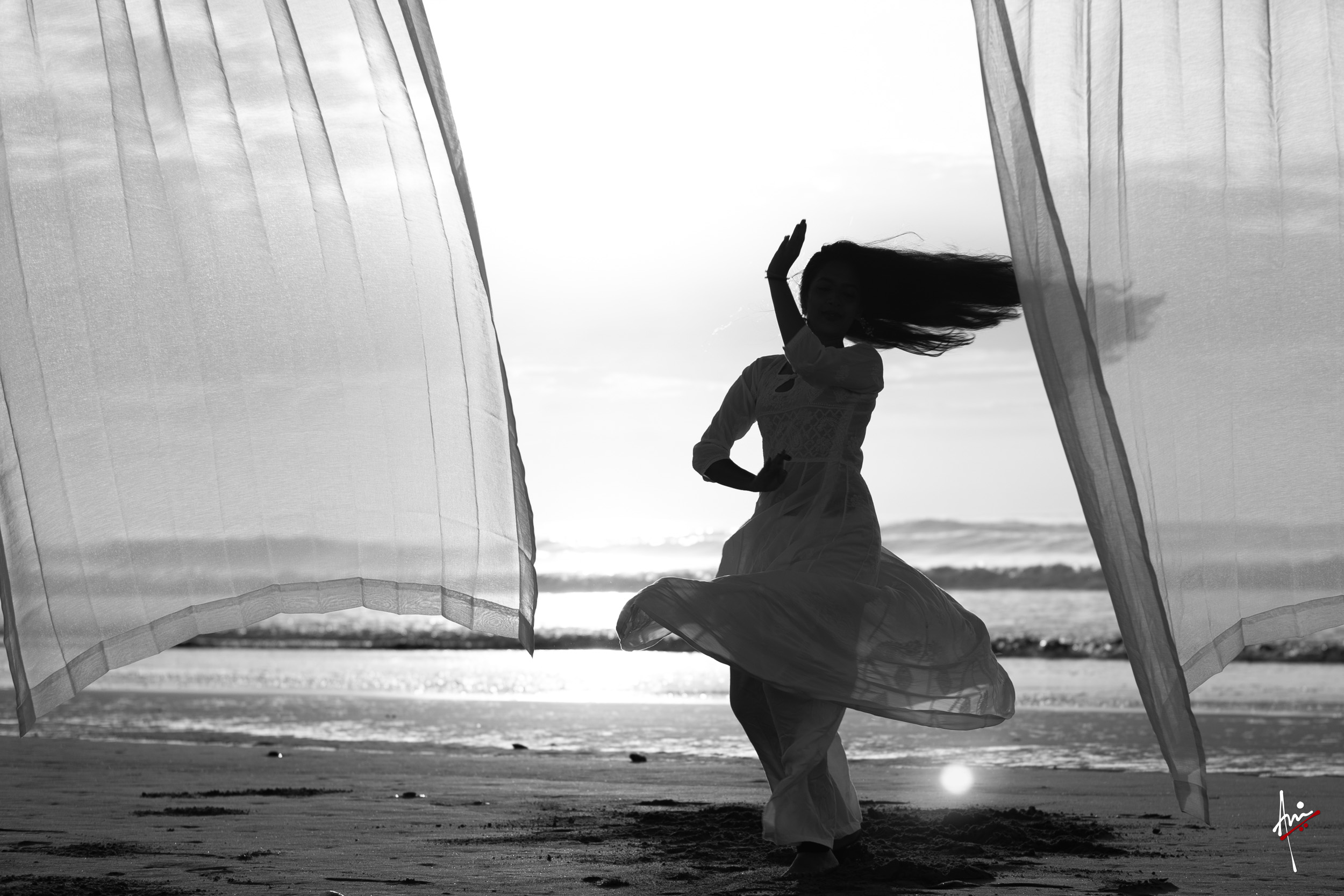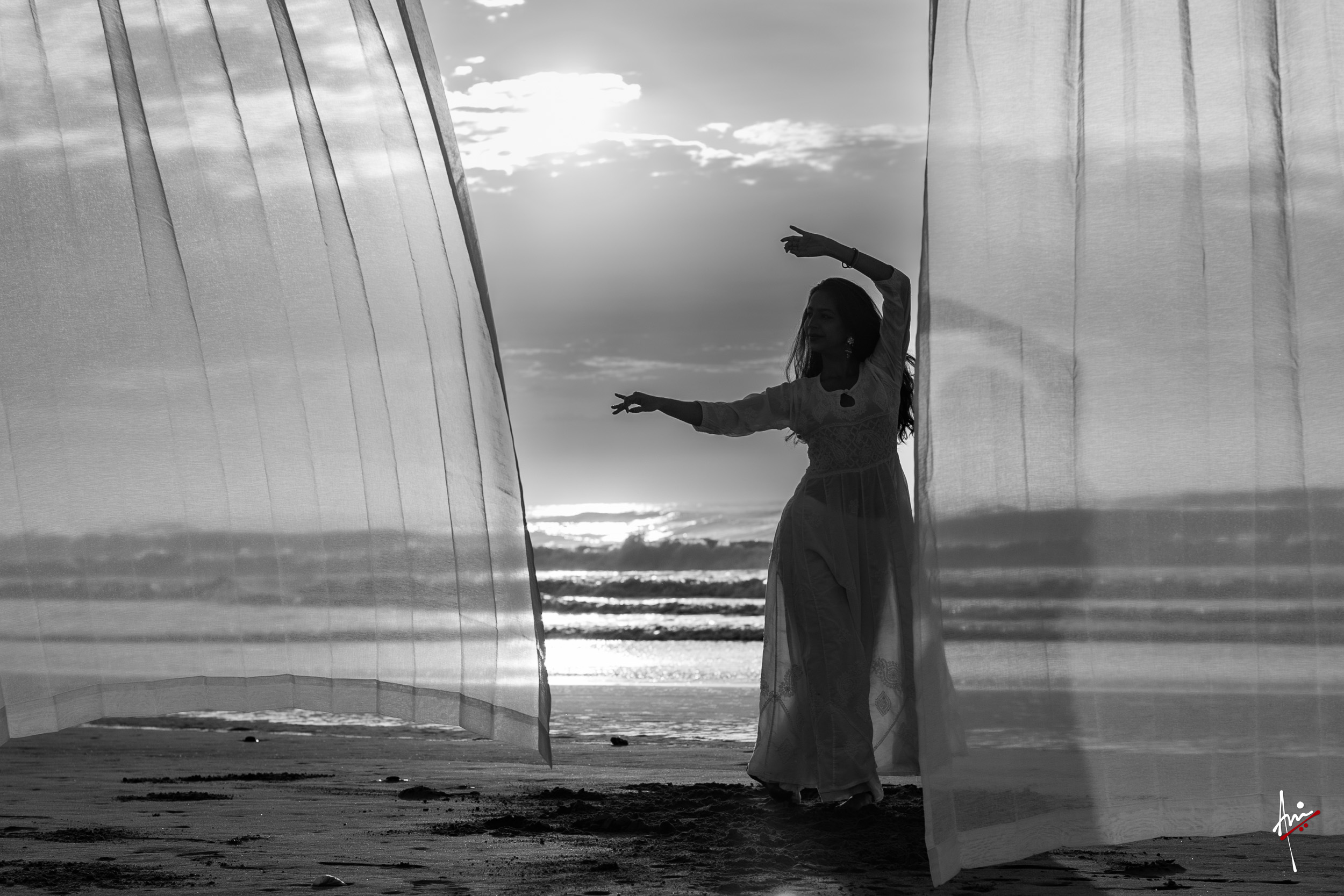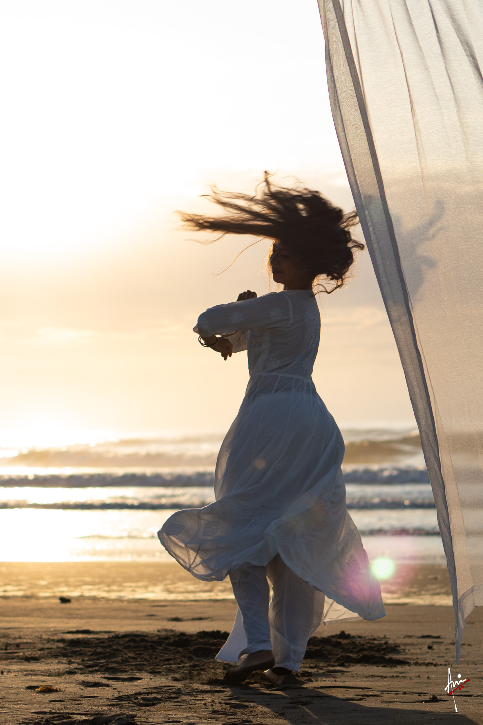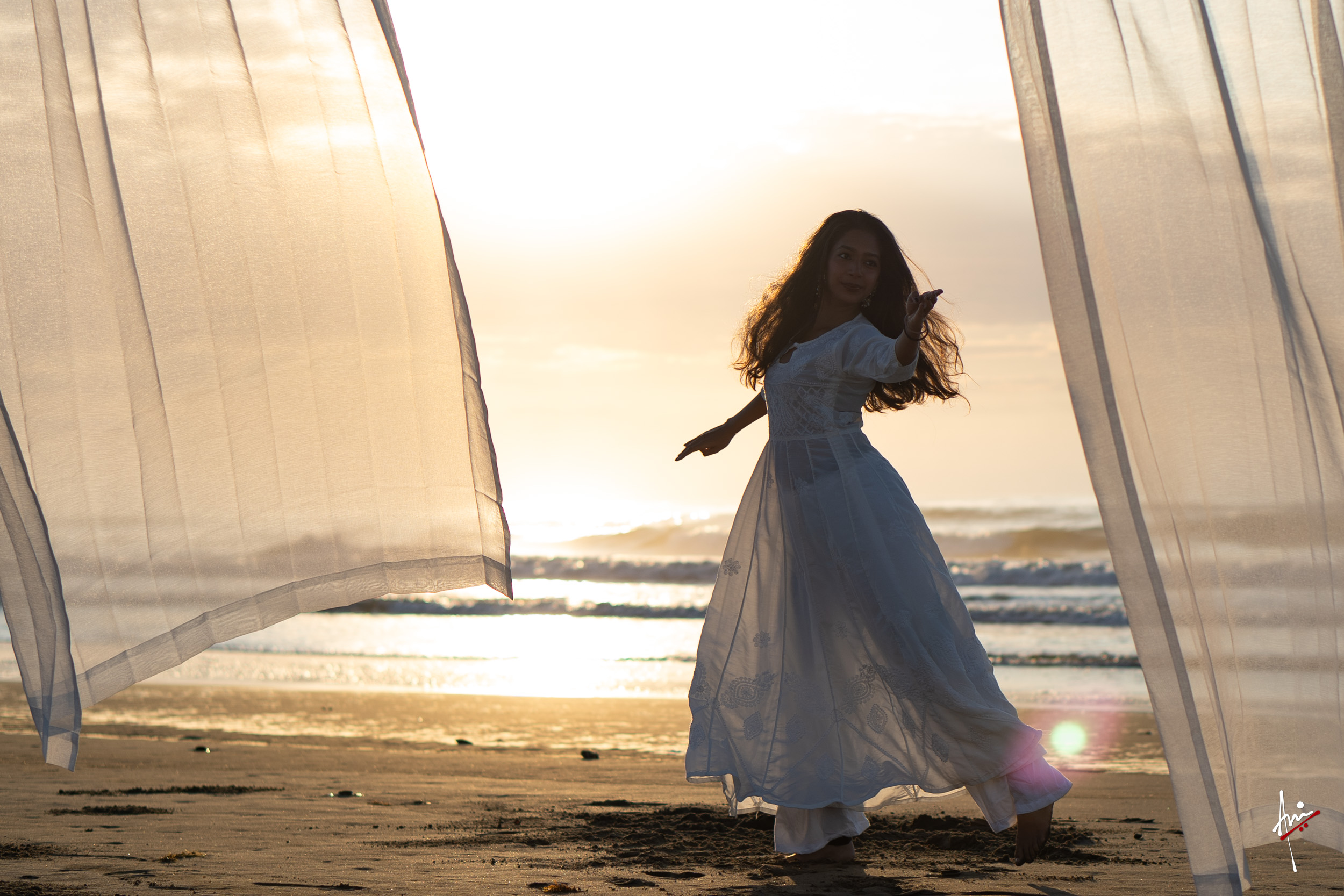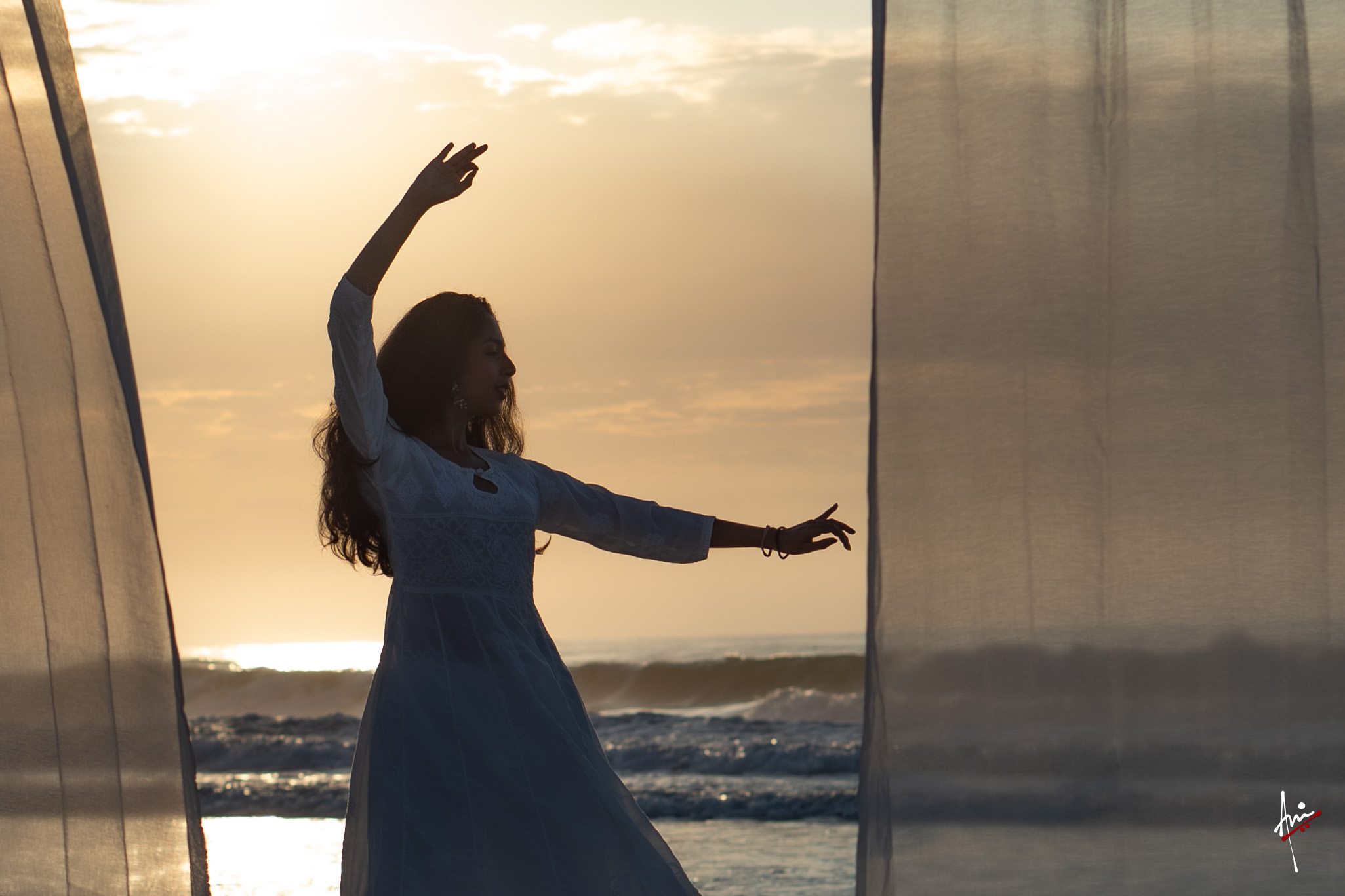 The photoshoot with Vasu, a young Kathak dancer, at Kujukuri Beach in Chiba, Japan, captures the serene beauty of the rising sun in the early morning. The soft hues of dawn blend seamlessly with the vast expanse of the ocean and the rhythmic dance of the waves. Against this natural backdrop, Vasu’s classical Kathak dance form comes to life, showcasing her grace, impeccable posture, and artistic flair. Her movements harmonise with the gentle ebb and flow of the sea, creating a captivating visual narrative that celebrates both the tranquillity of nature and the timeless elegance of Kathak.