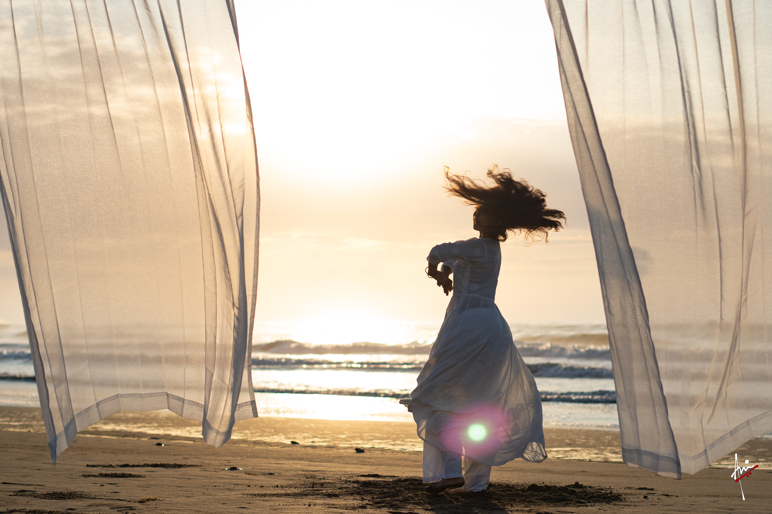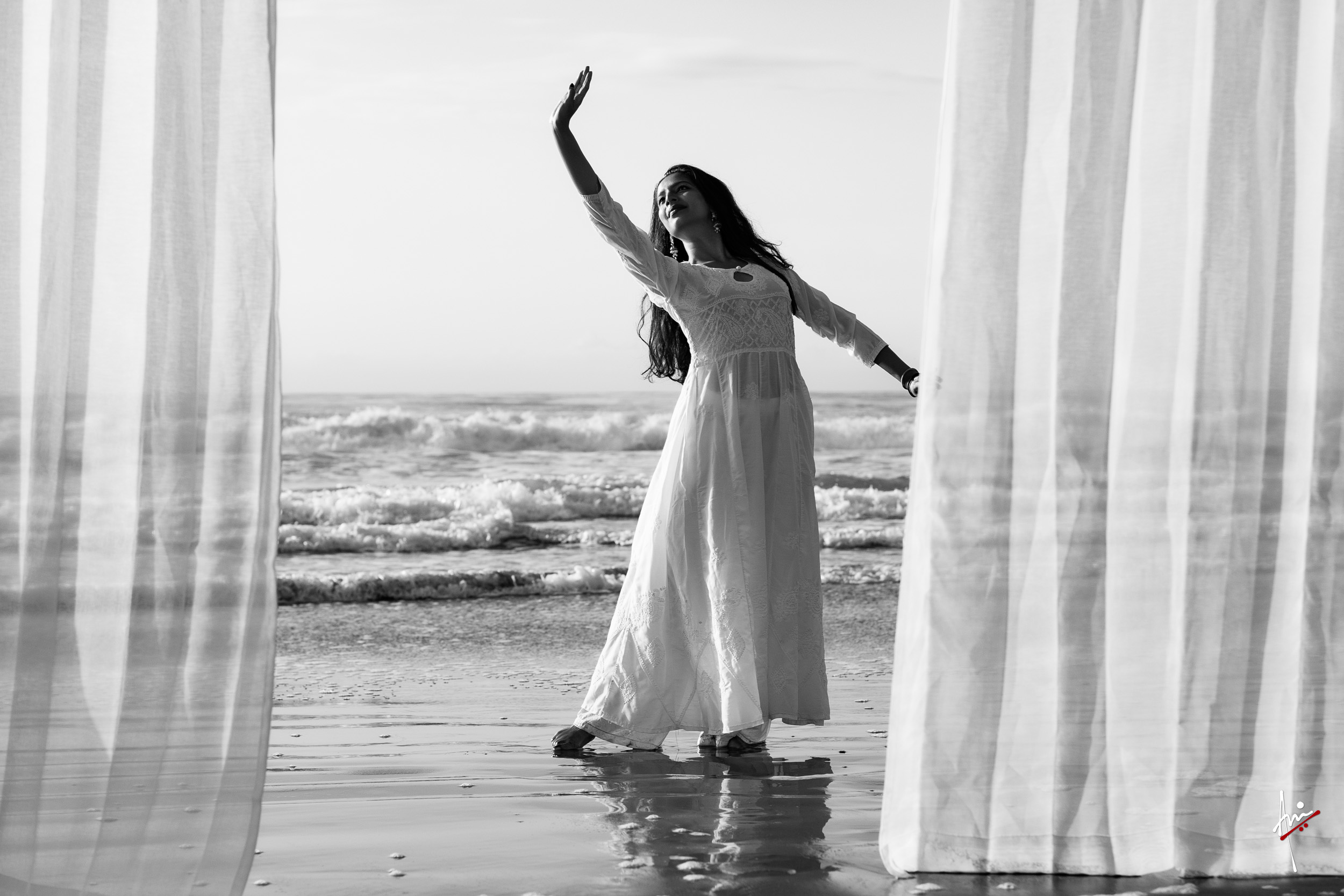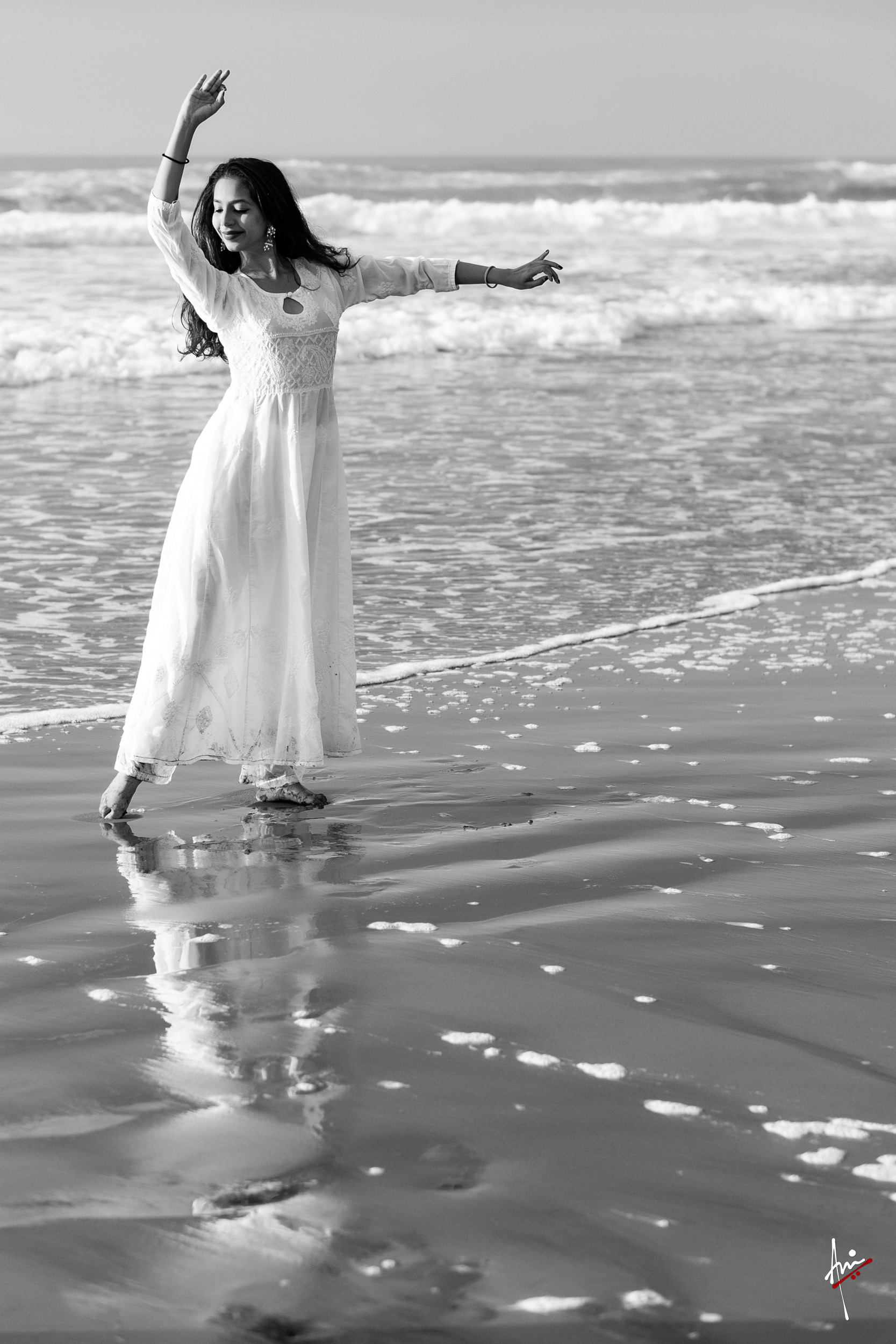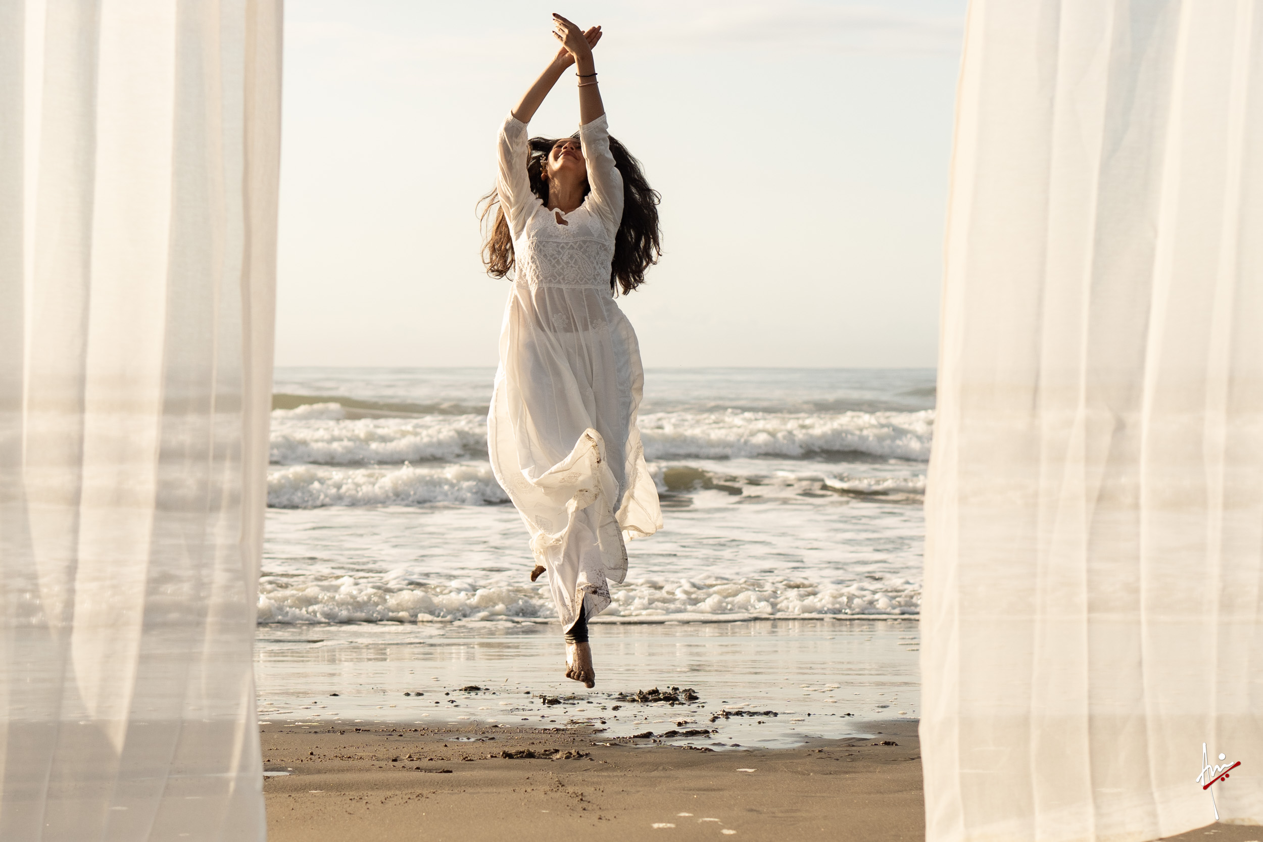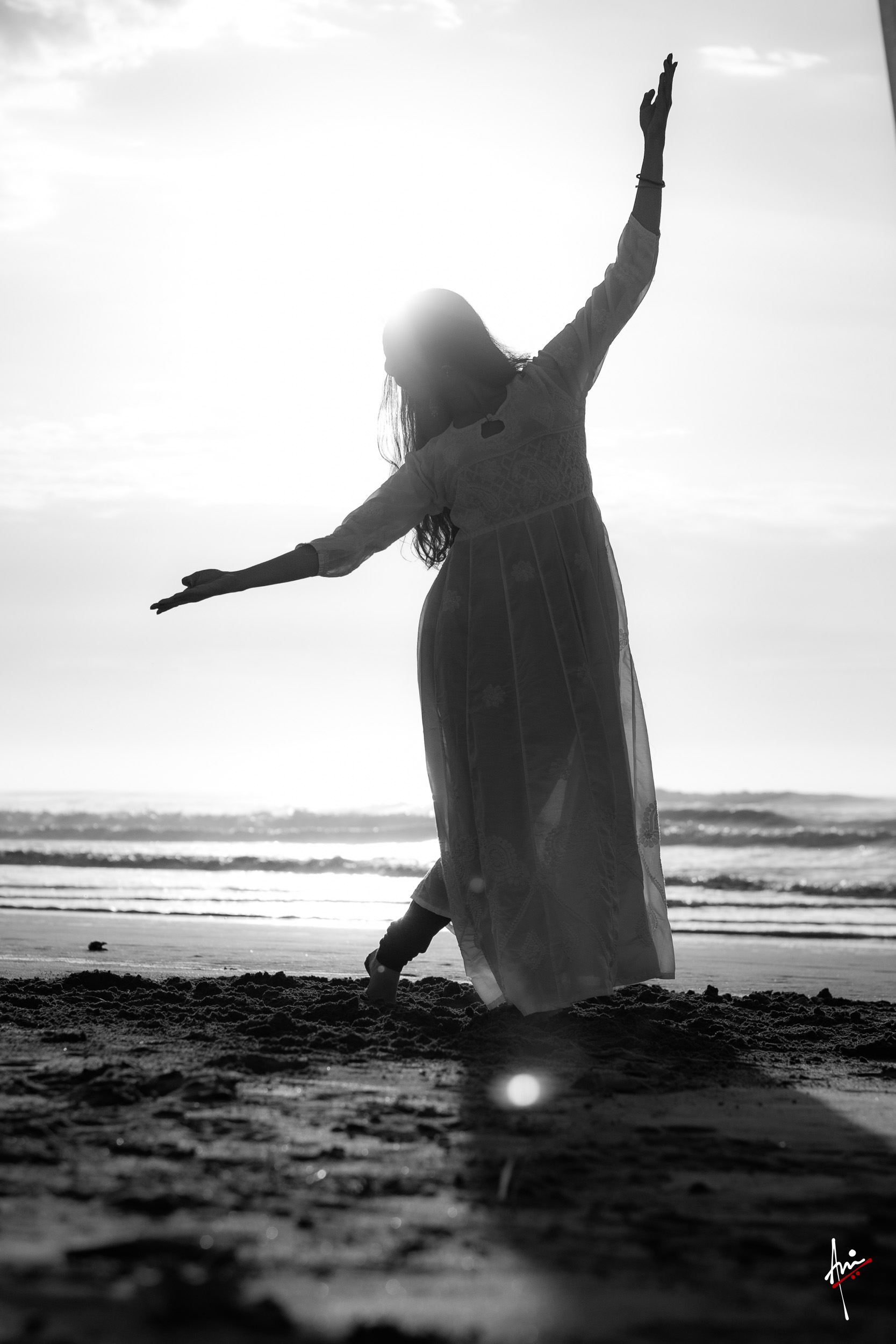 The photoshoot with Vasu, a young Kathak dancer, at Kujukuri Beach in Chiba, Japan, captures the serene beauty of the rising sun in the early morning. The soft hues of dawn blend seamlessly with the vast expanse of the ocean and the rhythmic dance of the waves. Against this natural backdrop, Vasu’s classical Kathak dance form comes to life, showcasing her grace, impeccable posture, and artistic flair. Her movements harmonise with the gentle ebb and flow of the sea, creating a captivating visual narrative that celebrates both the tranquillity of nature and the timeless elegance of Kathak.