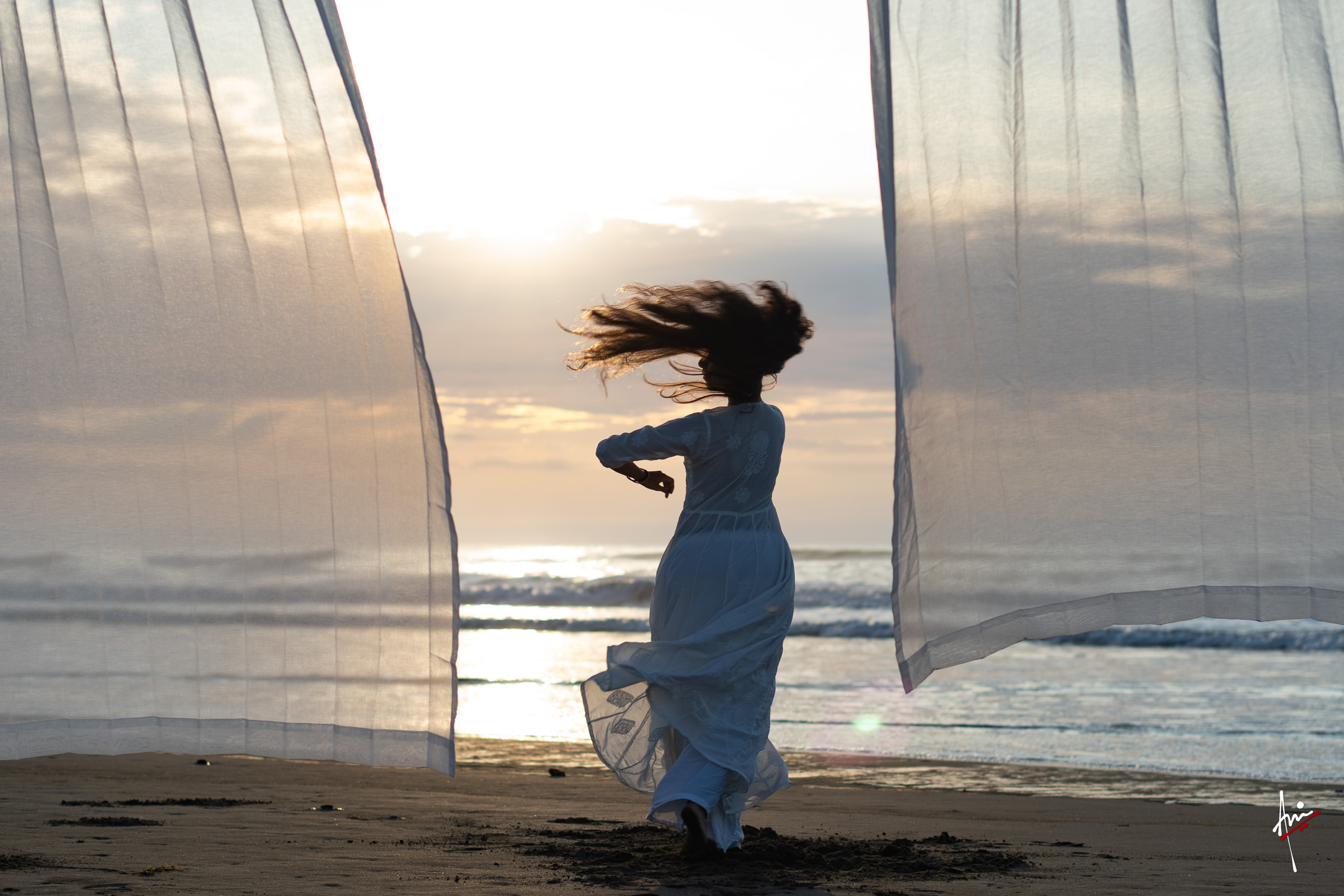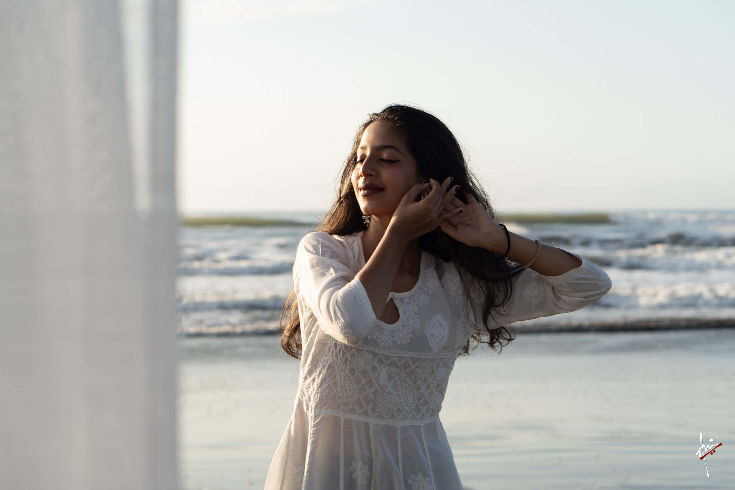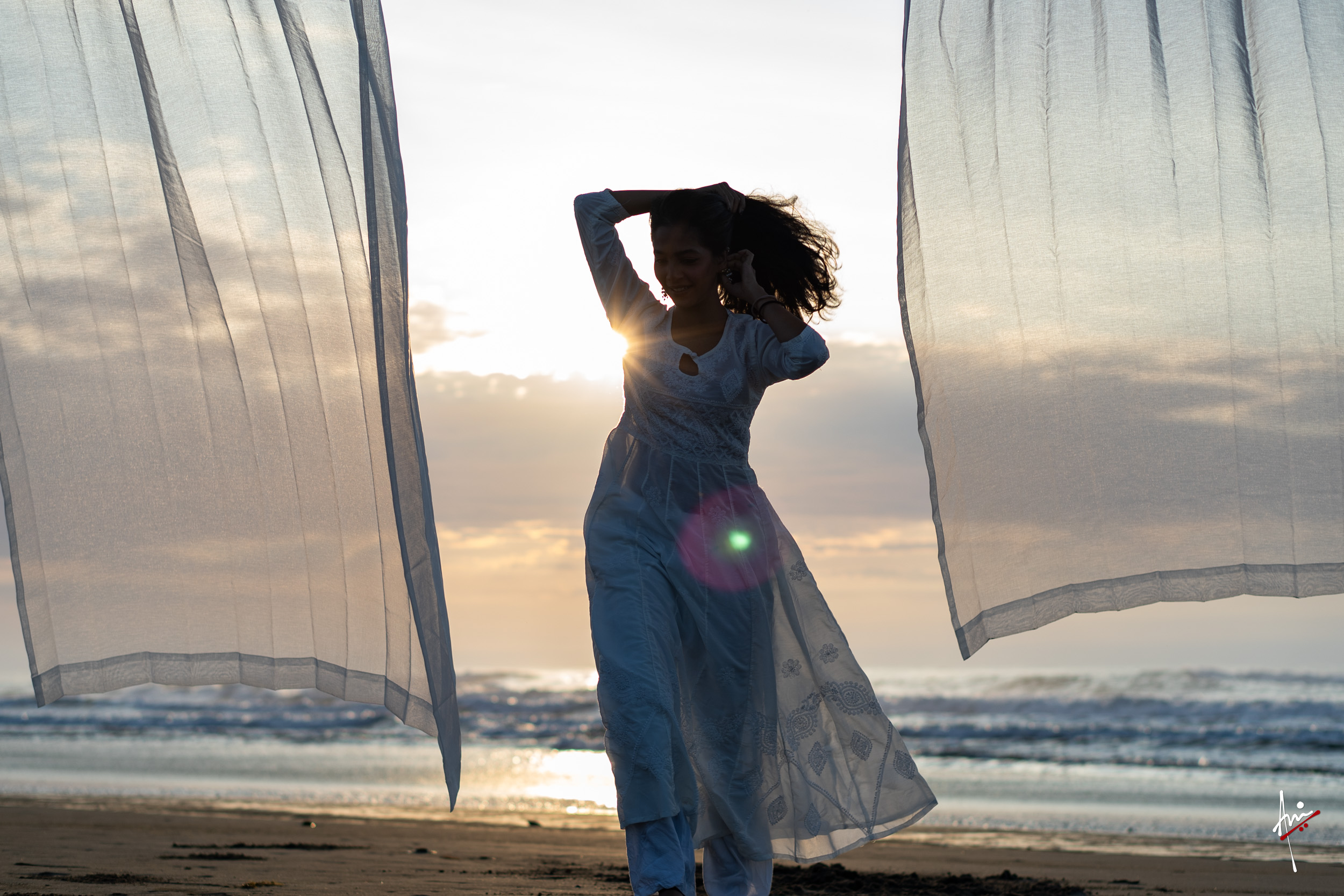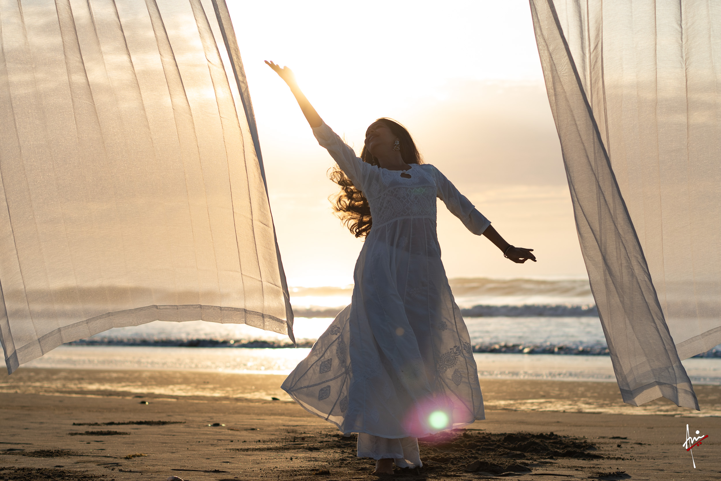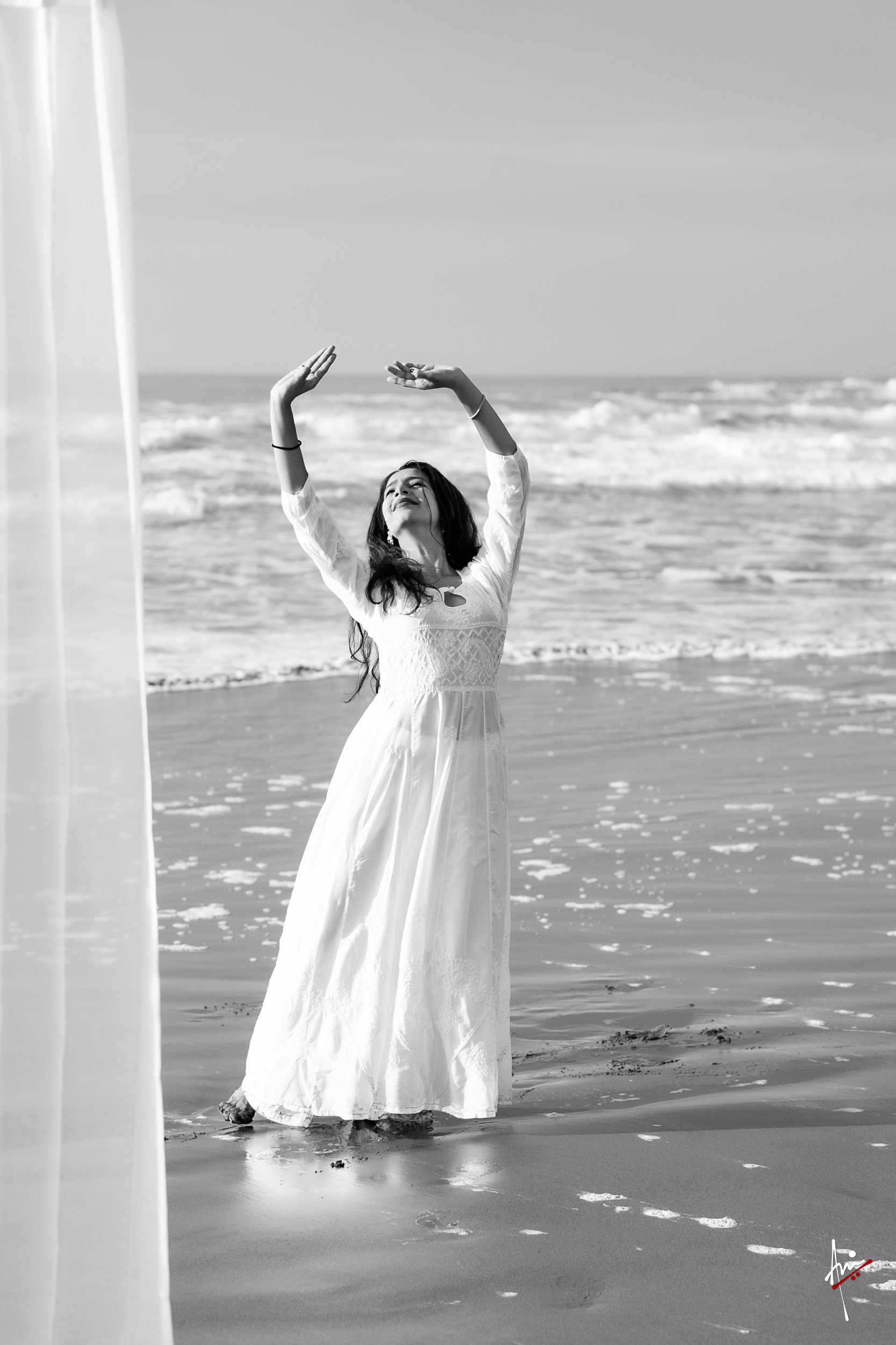 The photoshoot with Vasu, a young Kathak dancer, at Kujukuri Beach in Chiba, Japan, captures the serene beauty of the rising sun in the early morning. The soft hues of dawn blend seamlessly with the vast expanse of the ocean and the rhythmic dance of the waves. Against this natural backdrop, Vasu’s classical Kathak dance form comes to life, showcasing her grace, impeccable posture, and artistic flair. Her movements harmonise with the gentle ebb and flow of the sea, creating a captivating visual narrative that celebrates both the tranquillity of nature and the timeless elegance of Kathak.