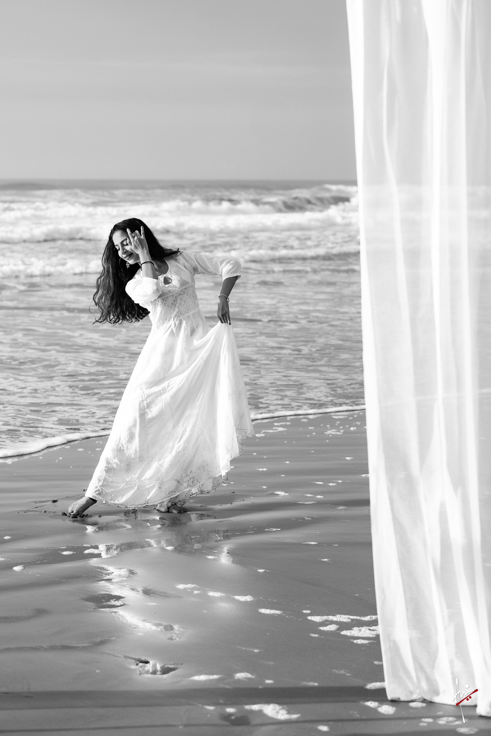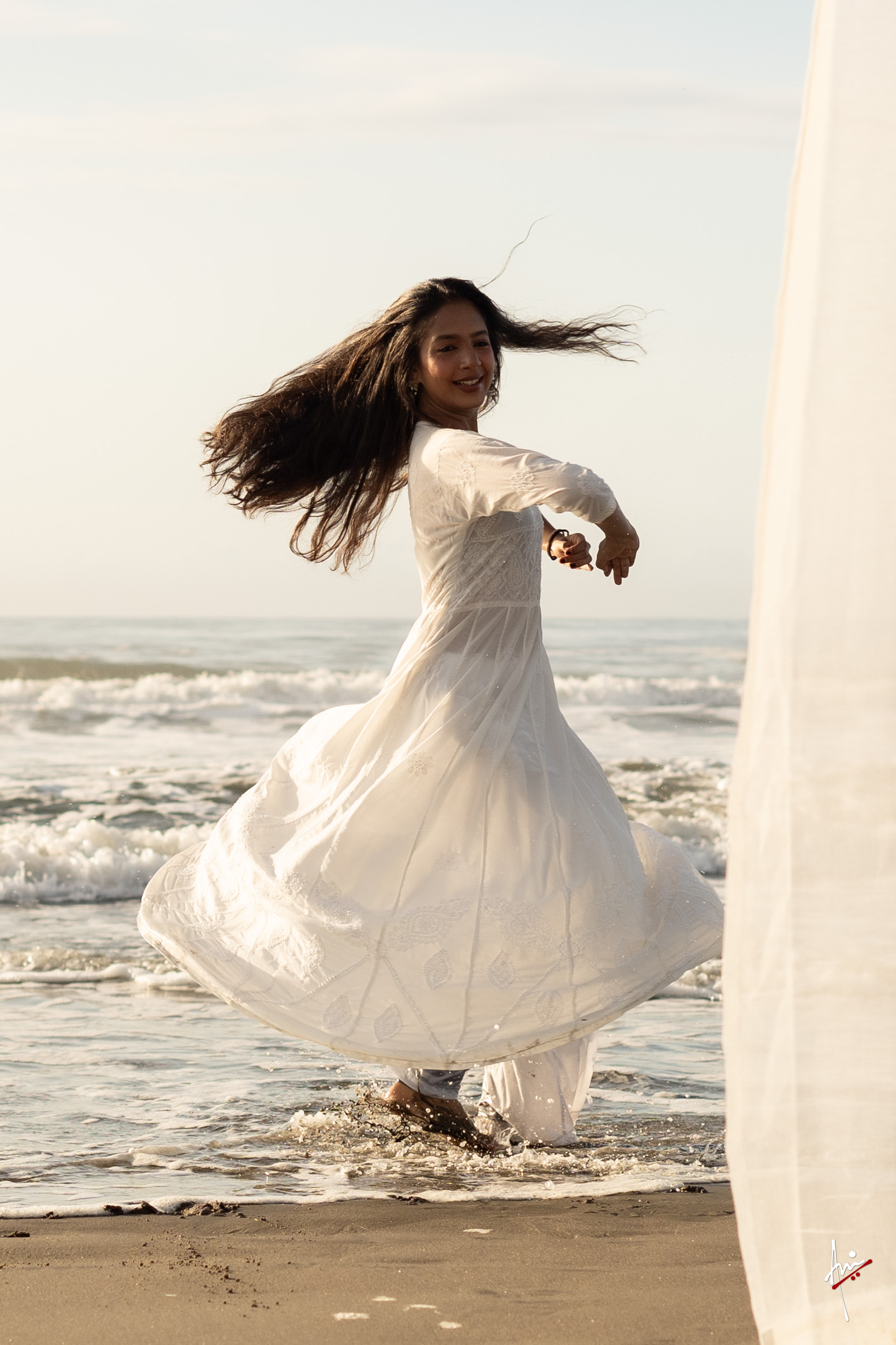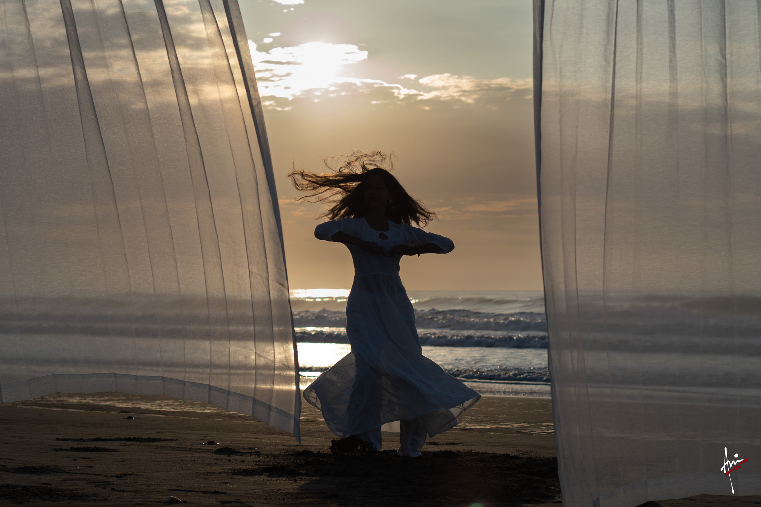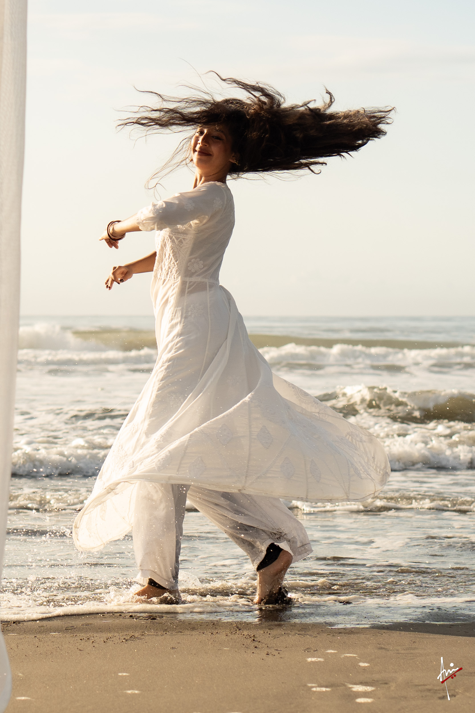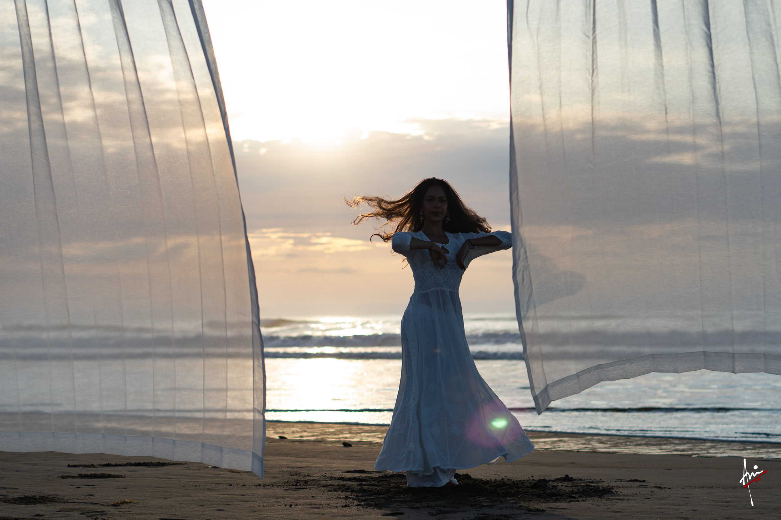 The photoshoot with Vasu, a young Kathak dancer, at Kujukuri Beach in Chiba, Japan, captures the serene beauty of the rising sun in the early morning. The soft hues of dawn blend seamlessly with the vast expanse of the ocean and the rhythmic dance of the waves. Against this natural backdrop, Vasu’s classical Kathak dance form comes to life, showcasing her grace, impeccable posture, and artistic flair. Her movements harmonise with the gentle ebb and flow of the sea, creating a captivating visual narrative that celebrates both the tranquillity of nature and the timeless elegance of Kathak.